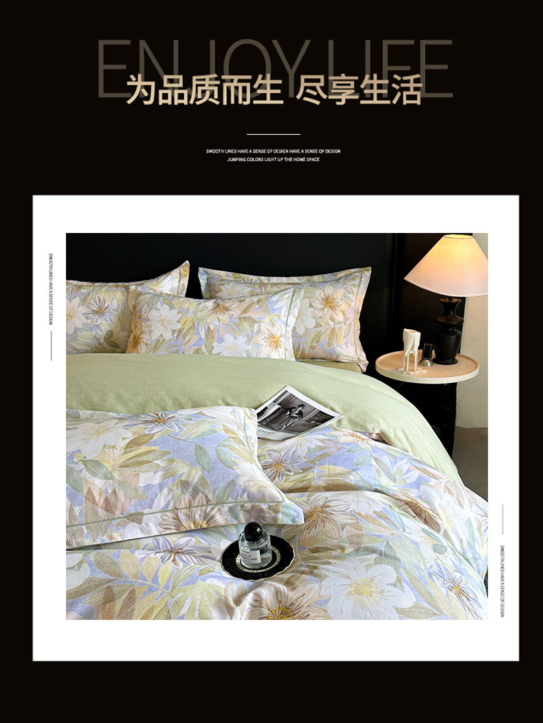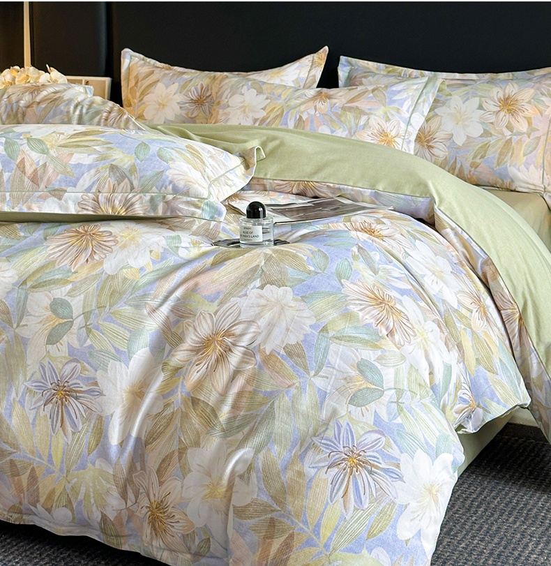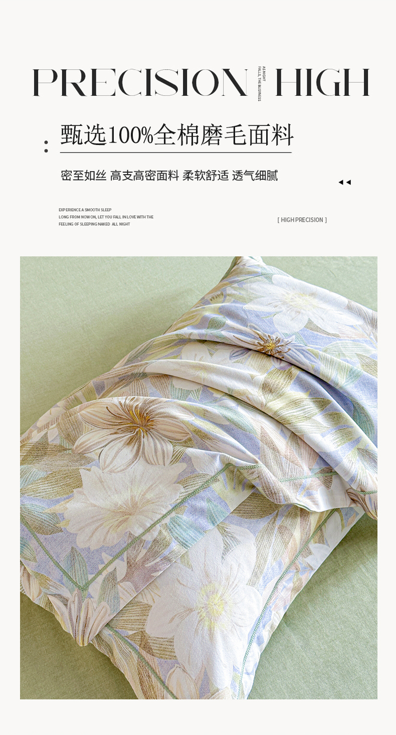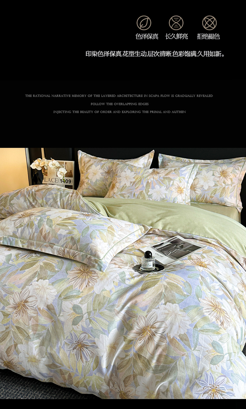 海洋家纺 2026新款100%全棉磨毛数码印花四件套加厚全棉四件套-提供买家秀 柔晨 绿