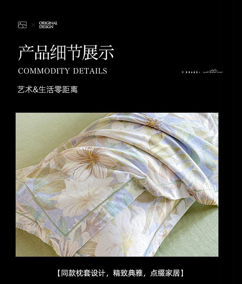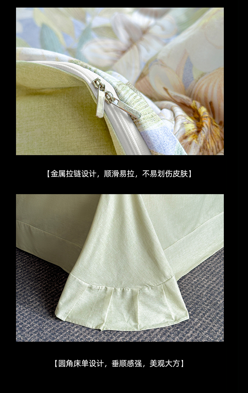 商品名称:海洋家纺 2026新款100%全棉磨毛数码印花四件套加厚全棉四件套-提供买家秀 柔晨 绿