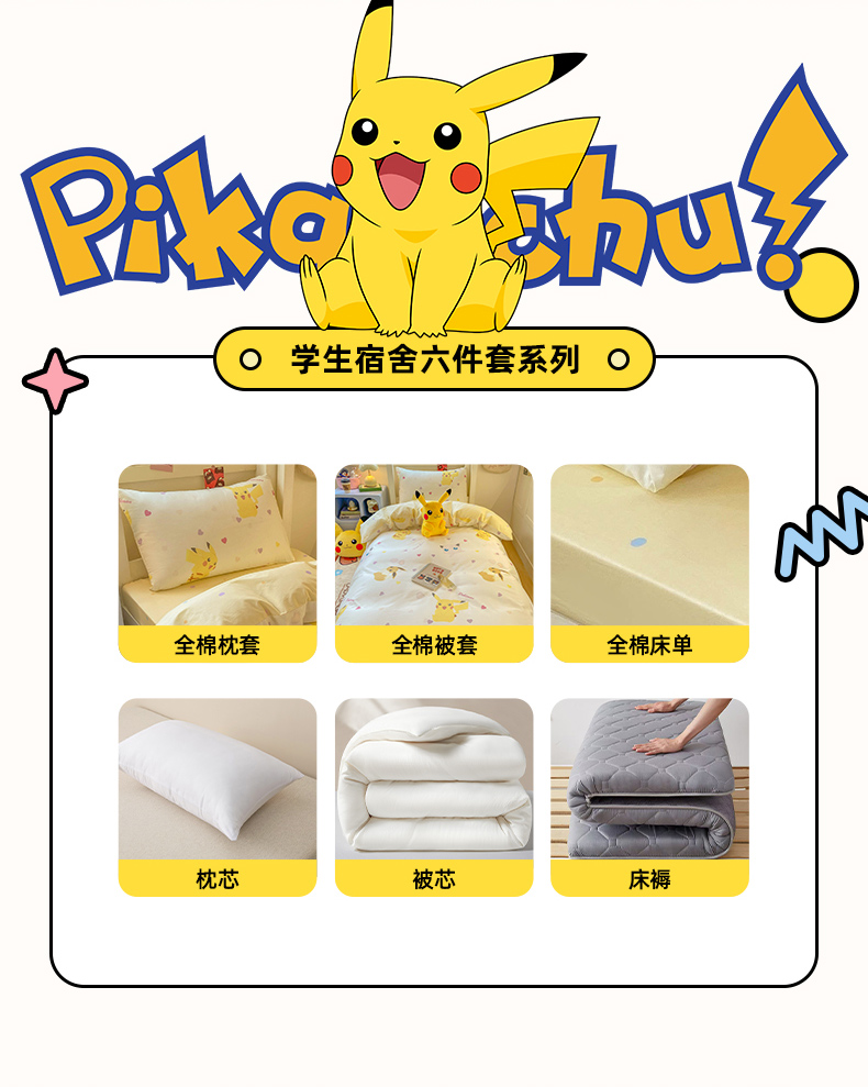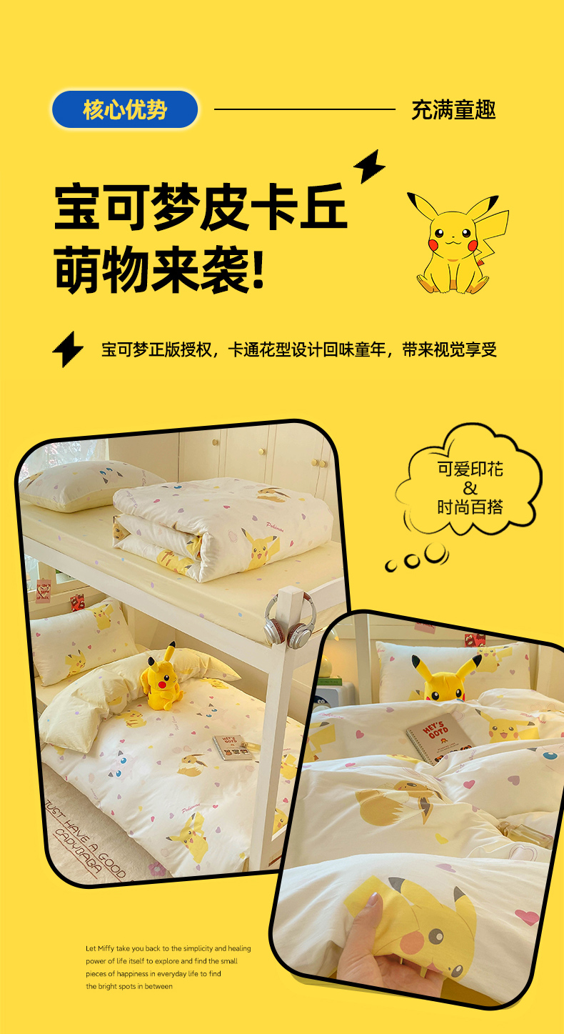 当前位置: 91家纺网 > 商品网购 > 床品套件 > 多件套 > 多件套 > 博雅 2025新款宝可梦皮卡丘正版授权上下铺套件 小心心皮卡丘