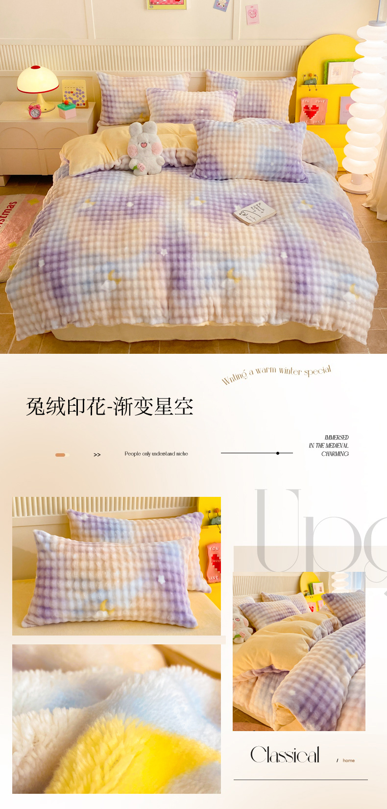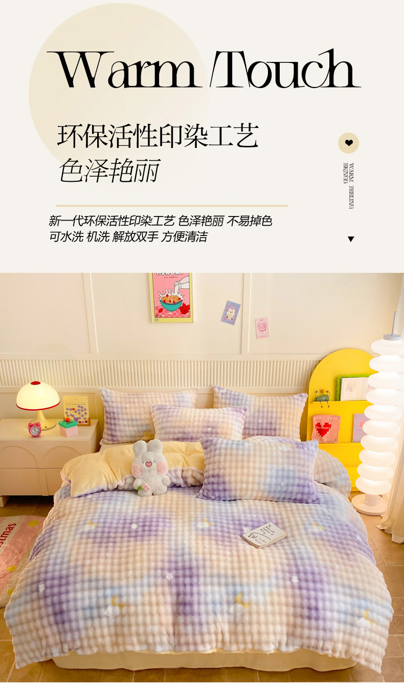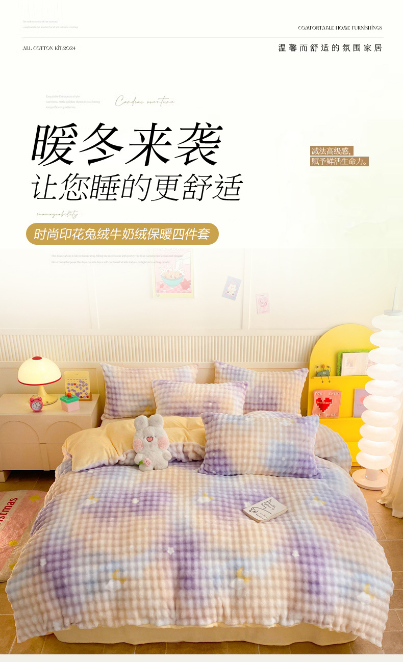 当前位置: 91家纺网 > 商品网购 > 床品套件 > 四件套 > 牛奶绒四件套 > 眠博士 2025新款时尚印花兔绒牛奶绒保暖四件套 兔绒印花-渐变星空