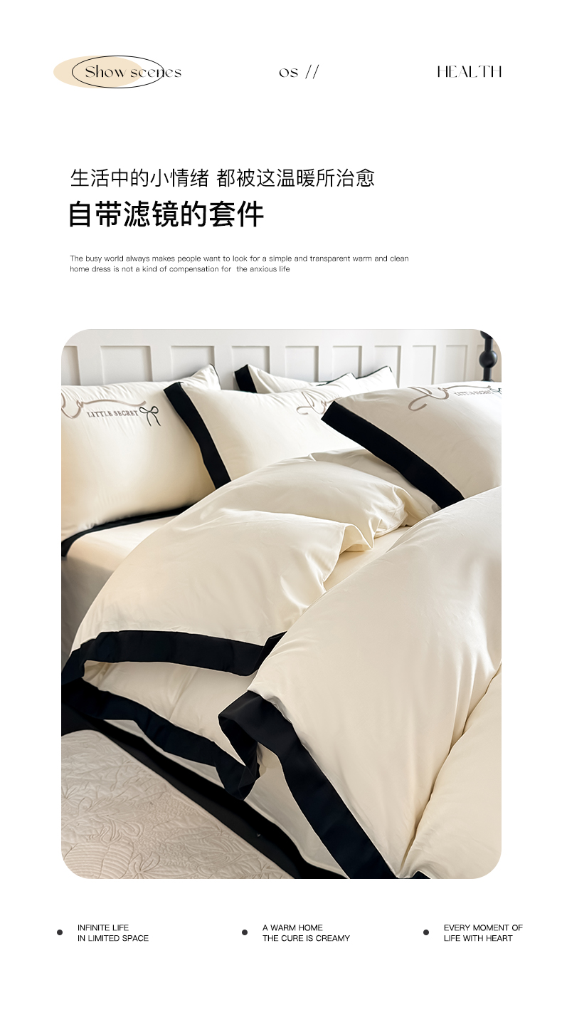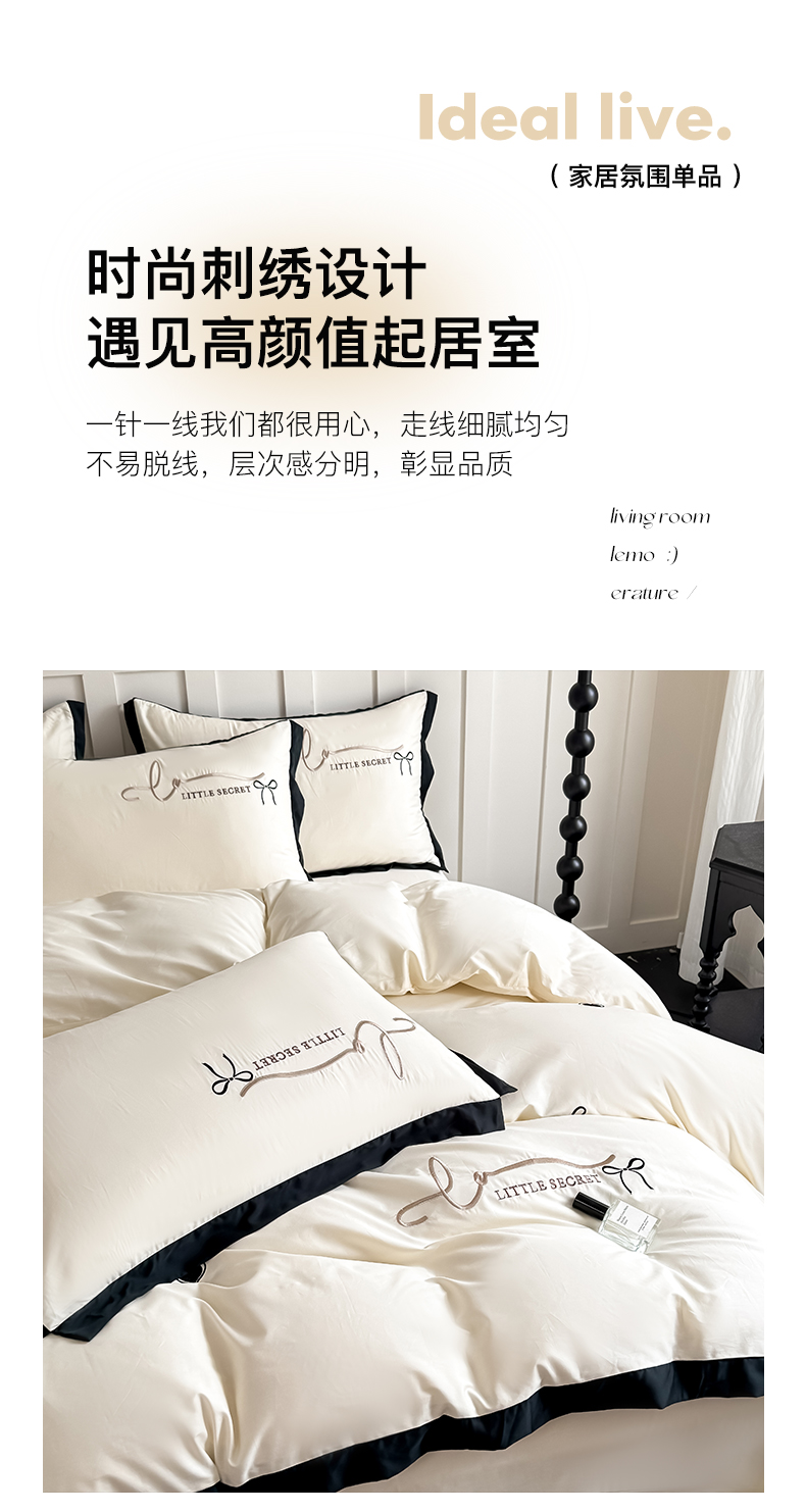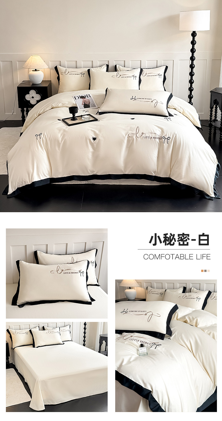 商品名称:理想家家纺 2025新款纯棉轻奢刺绣四件套-小秘密系列 小秘密-白