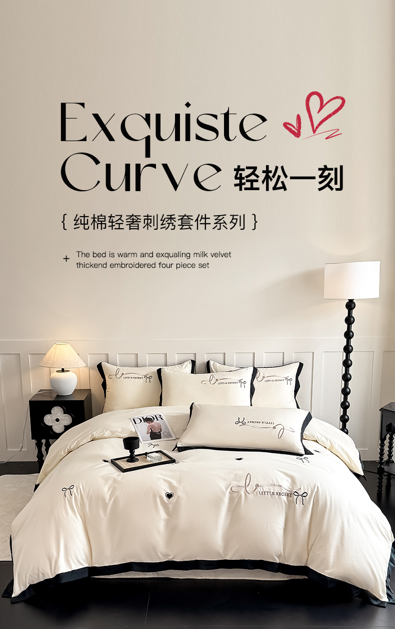 理想家家纺 2025新款纯棉轻奢刺绣四件套-小秘密系列 小秘密-白