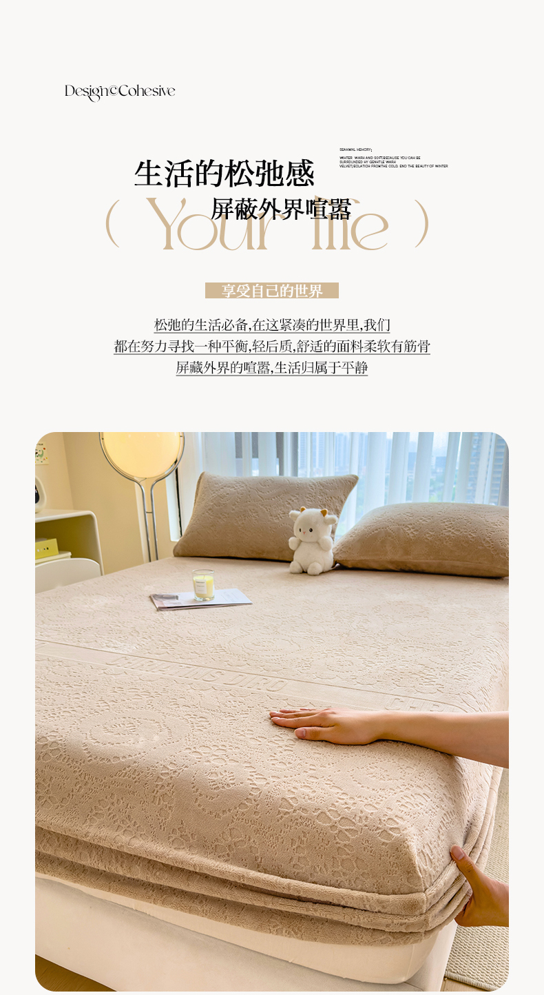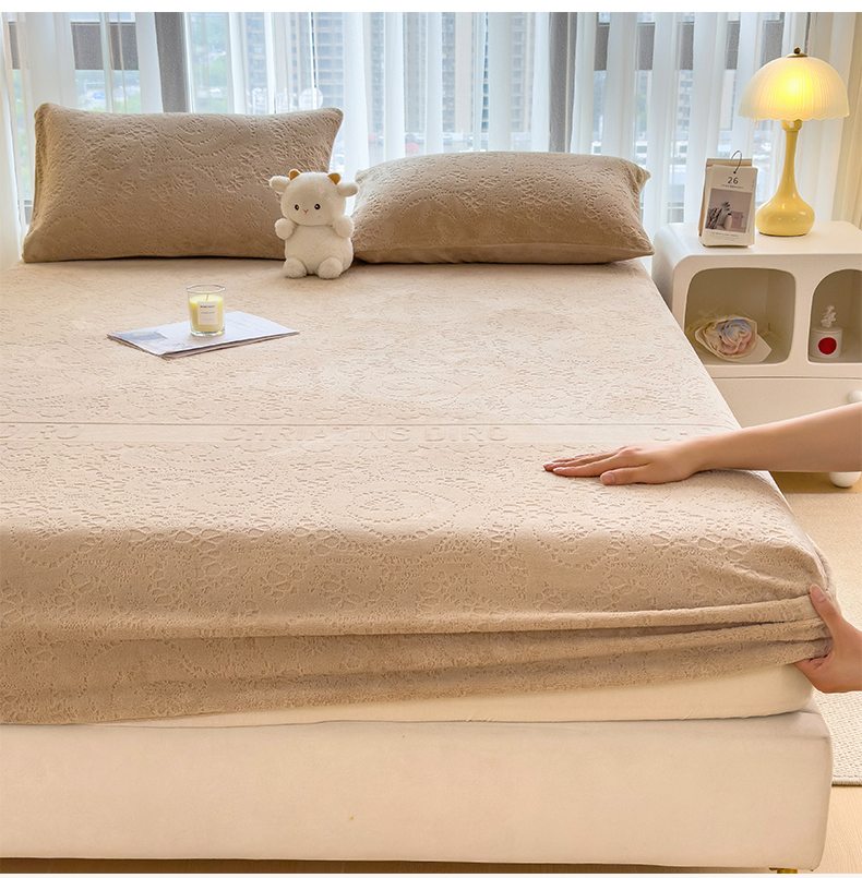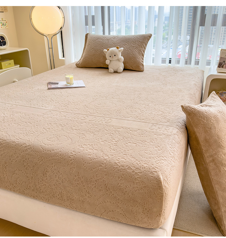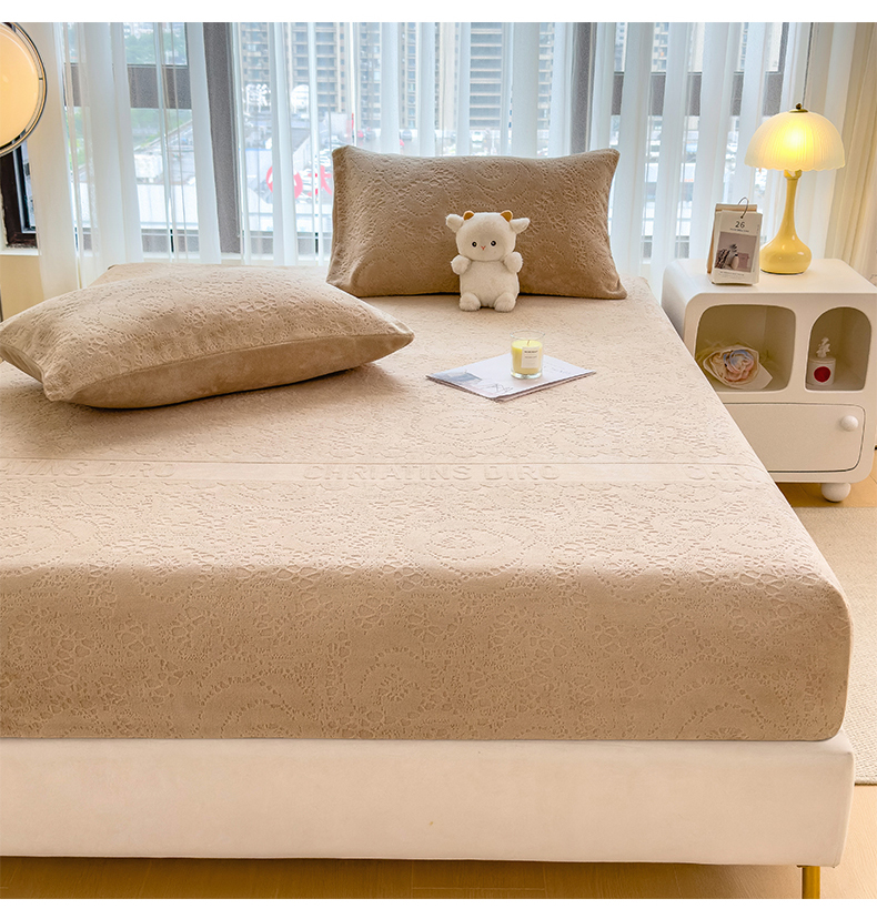 当前位置: 91家纺网 > 商品网购 > 床品套件 > 四件套 > 牛奶绒四件套 > 摩妮卡 2025新款小清新雕花牛奶绒床笠单床笠床笠三件套 梵迪咖