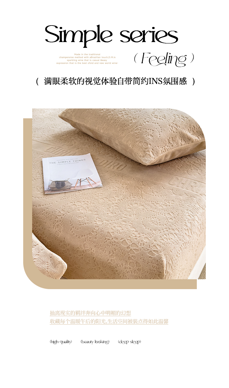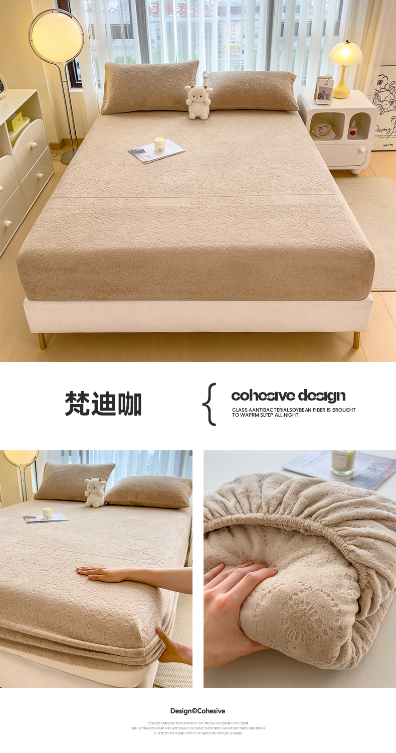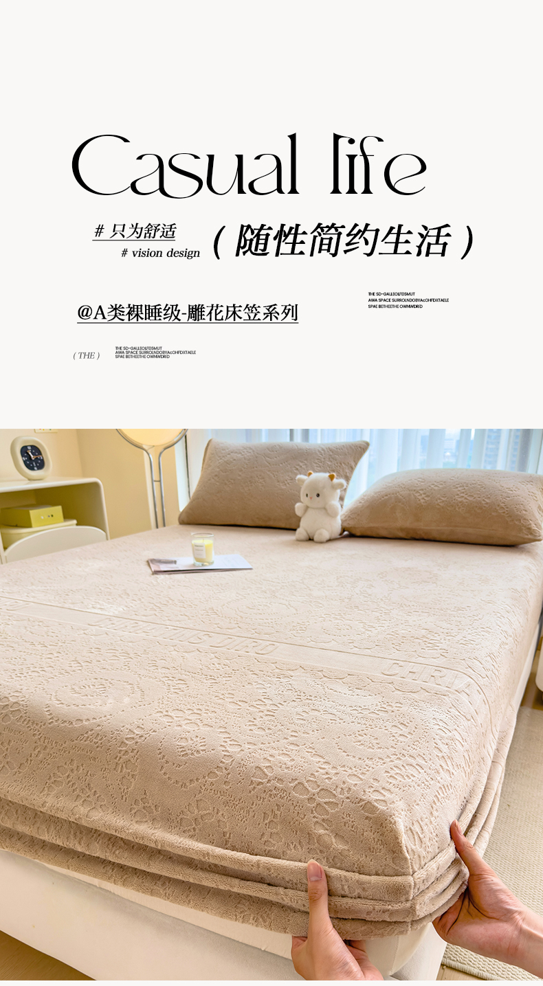 当前位置: 91家纺网 > 商品网购 > 床品套件 > 四件套 > 牛奶绒四件套 > 摩妮卡 2025新款小清新雕花牛奶绒床笠单床笠床笠三件套 梵迪咖