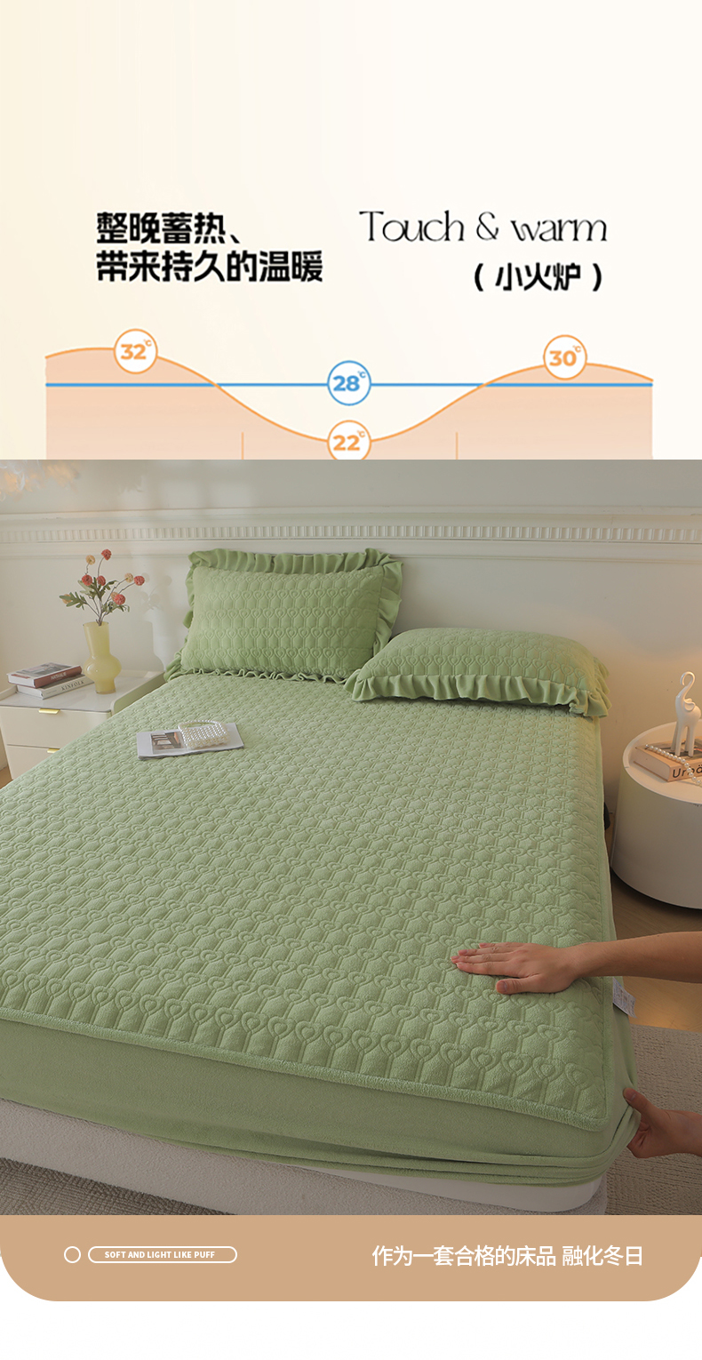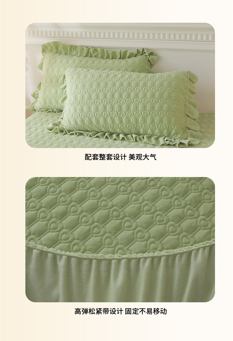 • 91家纺网 家纺一手货源 找家纺 怡源梦  2025新款夹棉床笠-甜心公主系列 绿色