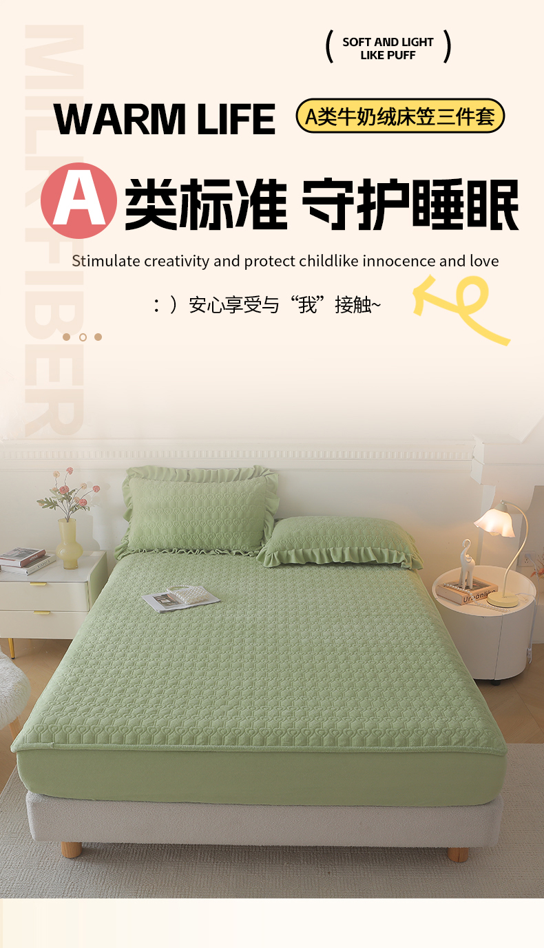 • 91家纺网 家纺一手货源 找家纺 (总)怡源梦 2025新款A类牛奶绒夹棉床笠三件套-甜心公主系列,灰色,咖色,大红色,粉玉色,绿色,米白色,紫色