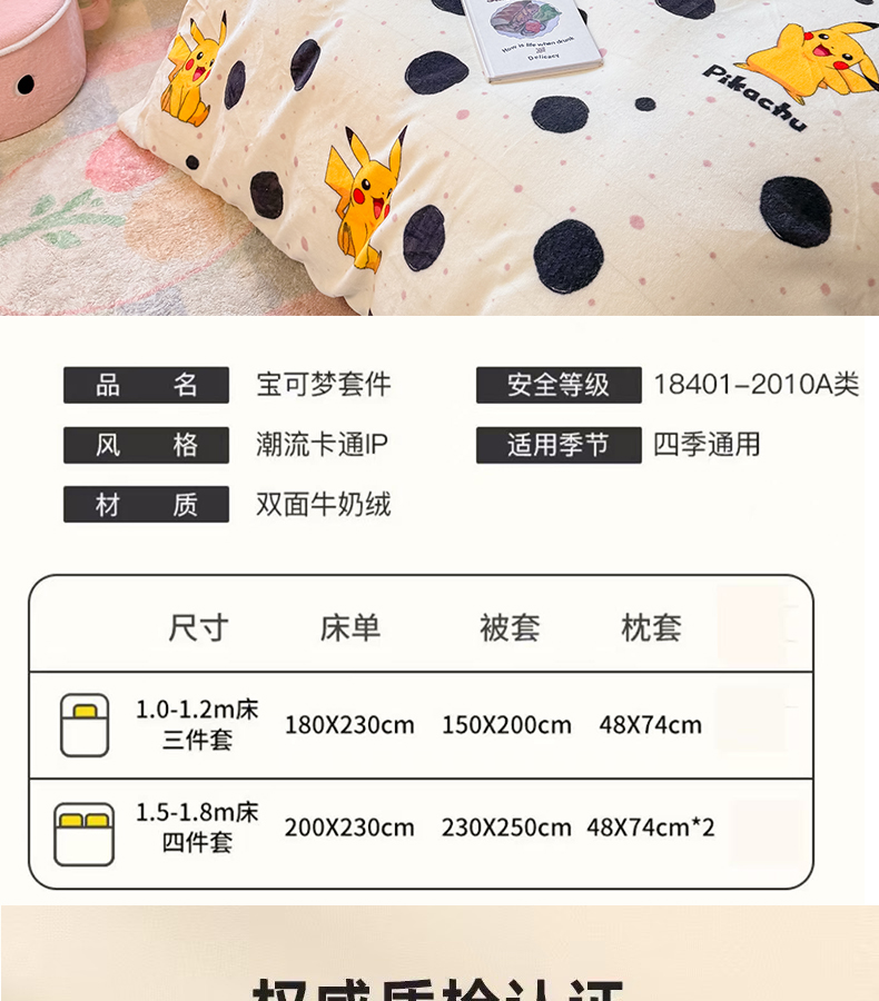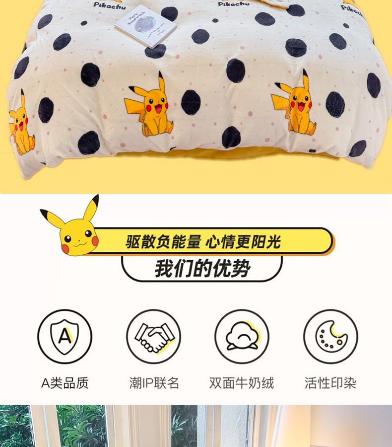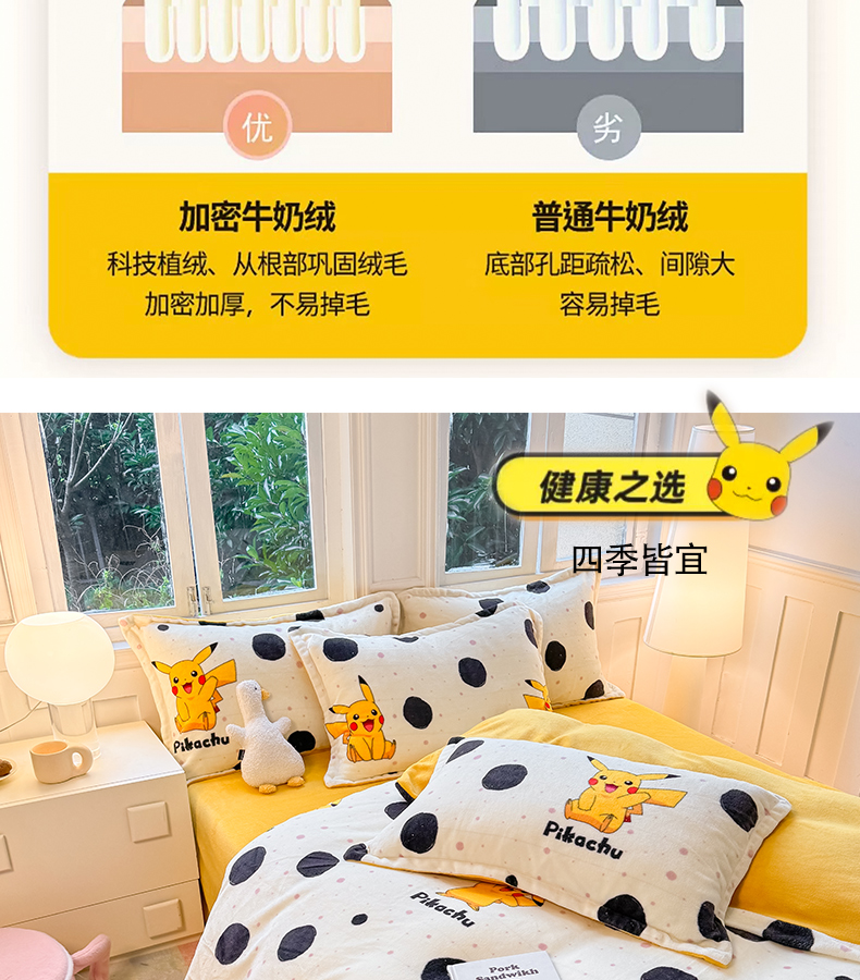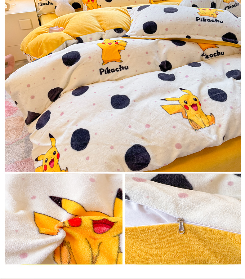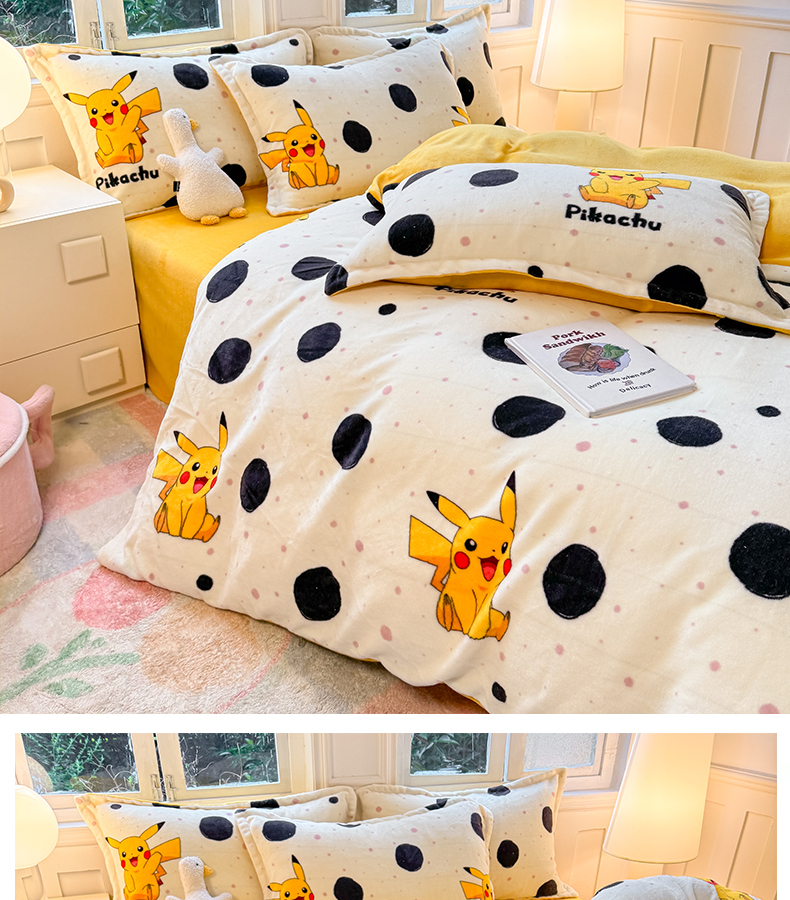 当前位置: 91家纺网 > 商品网购 > 床品套件 > 四件套 > 牛奶绒四件套 > 徕米家居 2025新款双面牛奶绒卡通印花四件套 精灵皮卡丘