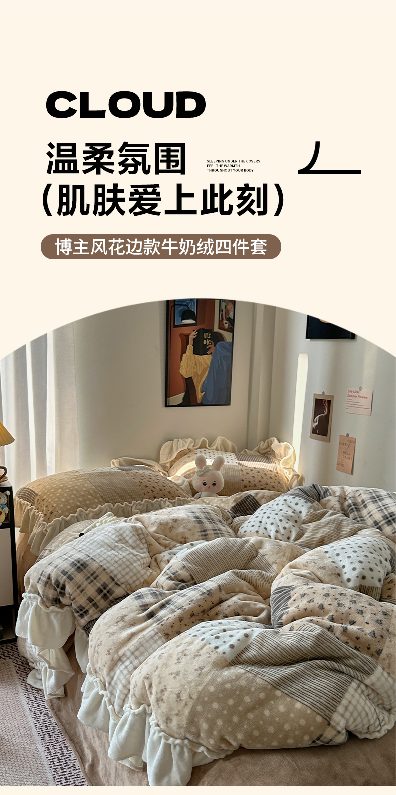 (总)艾咪-Amy ntmy 2025新款毛球款法式少女风牛奶绒四件套,北茉,躲猫猫咖,躲猫猫蓝,丽夏,梦花影,墨花叙,清香粉,清香咖,香榭,躲猫猫粉