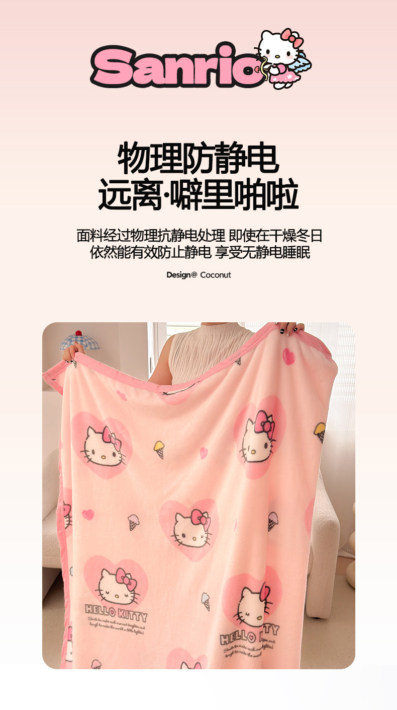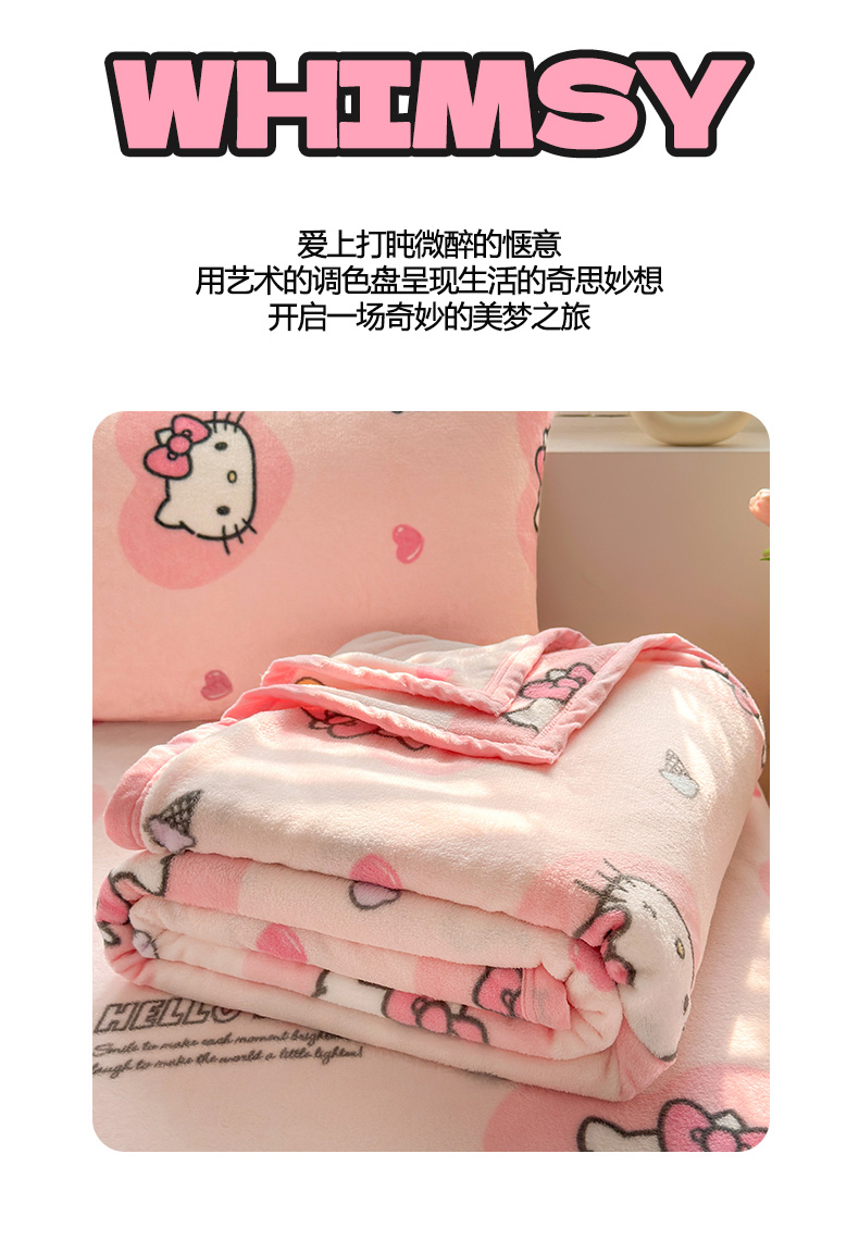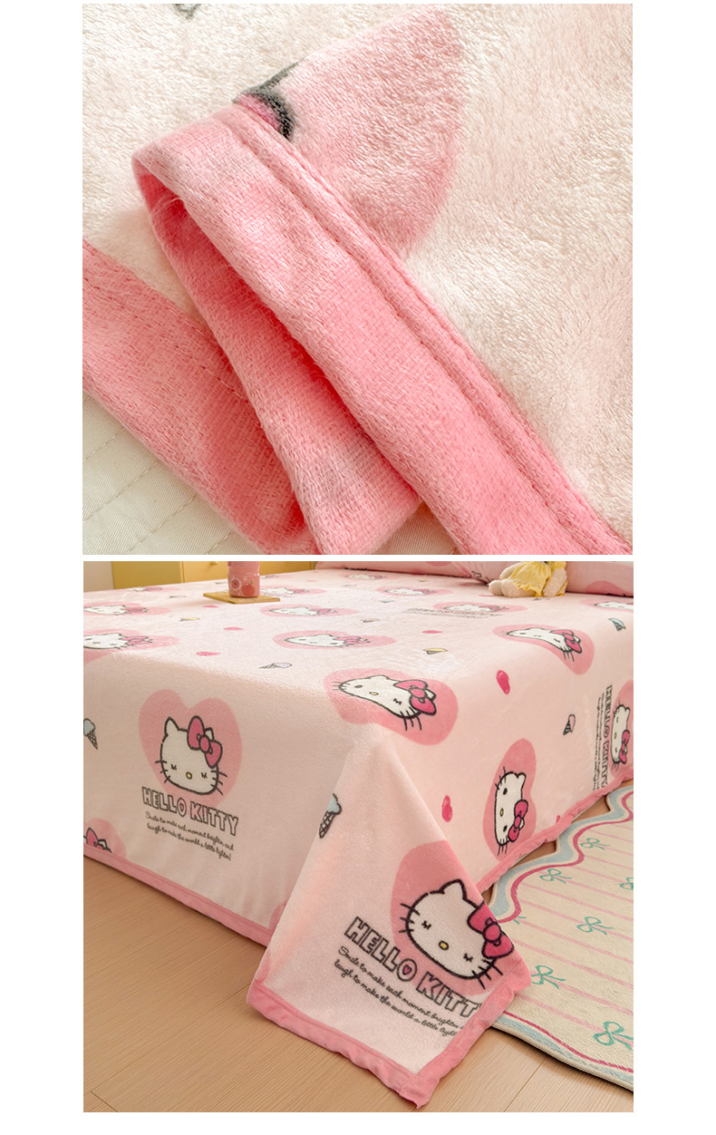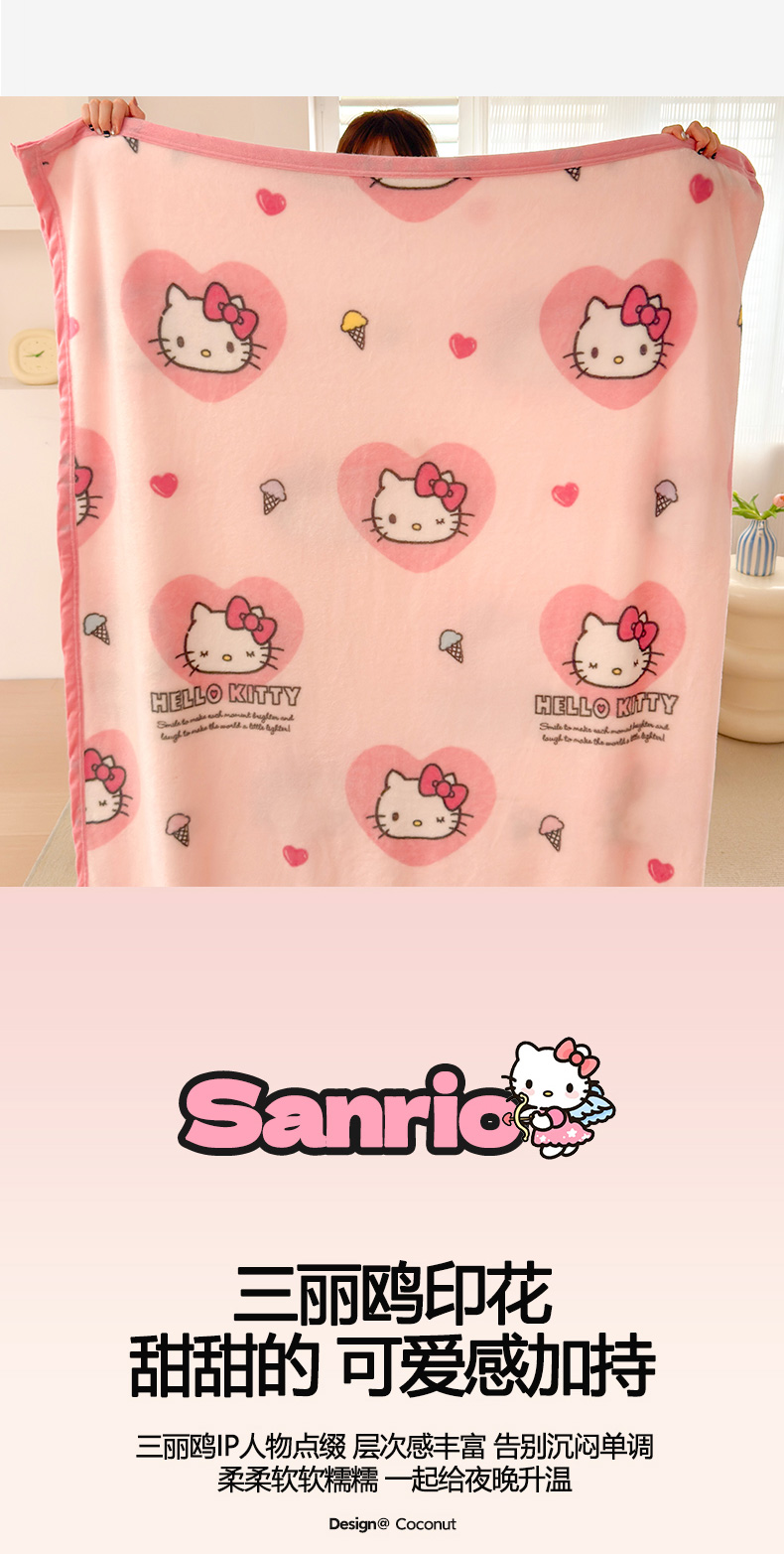 商品名称:初念 2025新款正版三丽鸥双面印花牛奶绒多功能四季款毛毯空调毯(撸猫触感,双倍柔软)(提供买家秀) 舒芙蕾-软萌KT