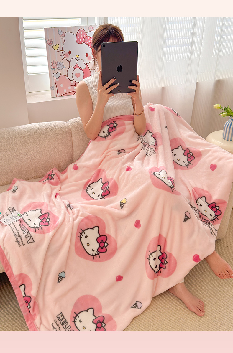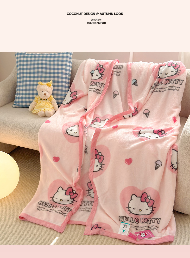 初念 2025新款正版三丽鸥双面印花牛奶绒多功能四季款毛毯空调毯(撸猫触感,双倍柔软)(提供买家秀) 舒芙蕾-软萌KT