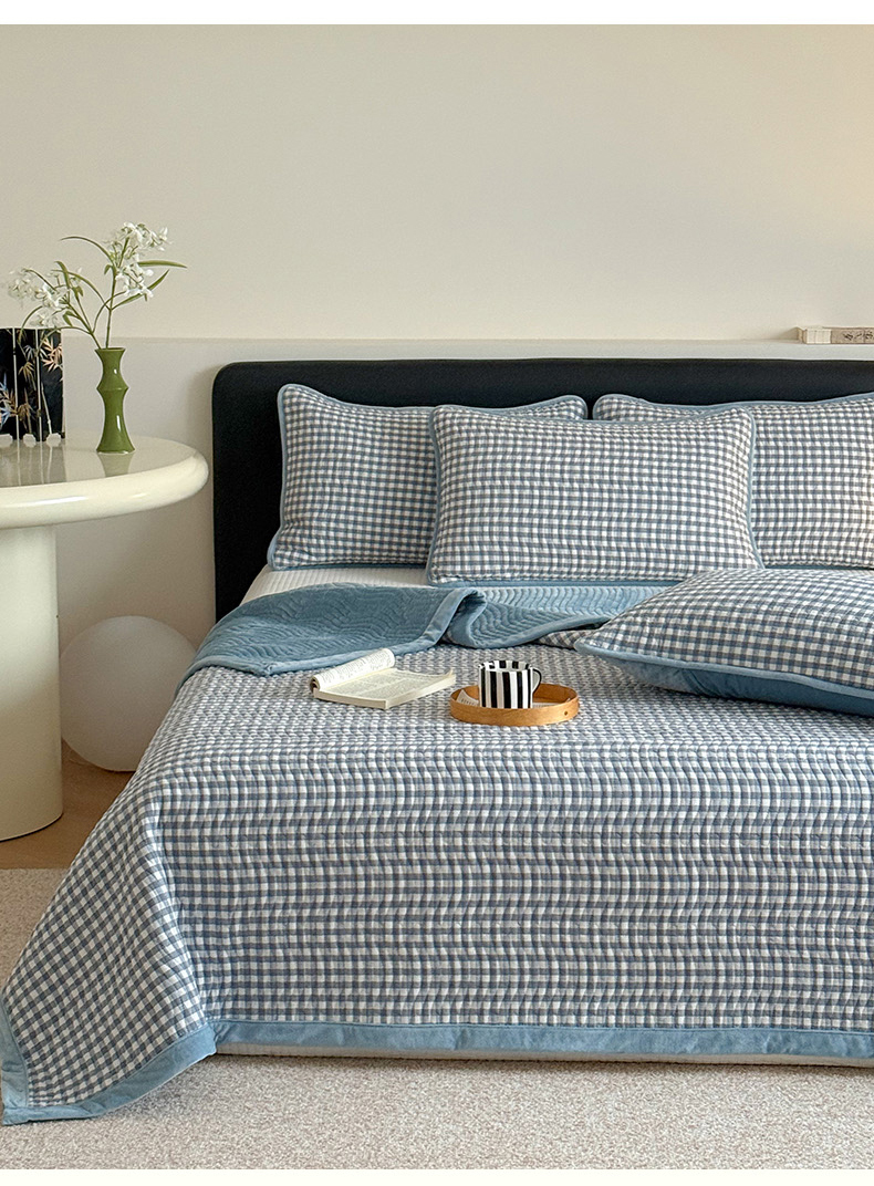 当前位置: 91家纺网 > 商品网购 > 床上用品 > 床盖 > 乐野家居 2025新款A类全棉色织水洗棉棉加绒床盖三件套 粉小格