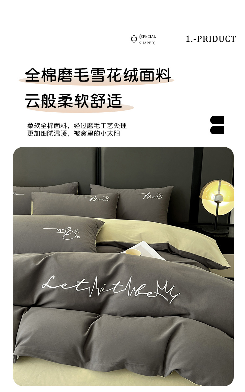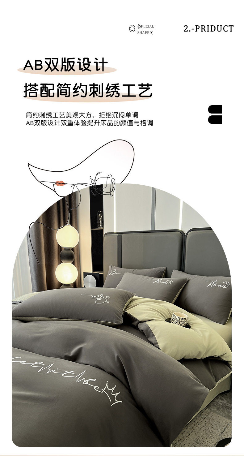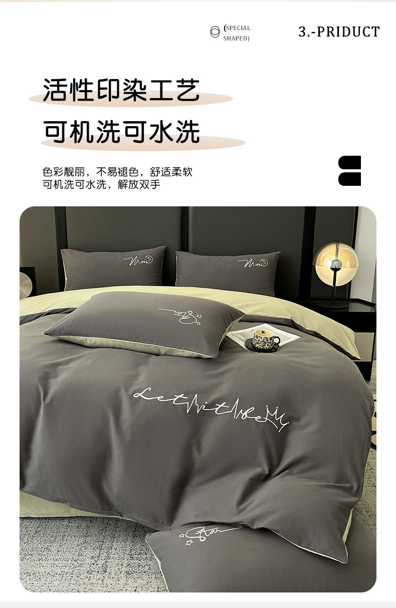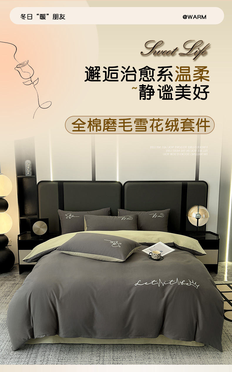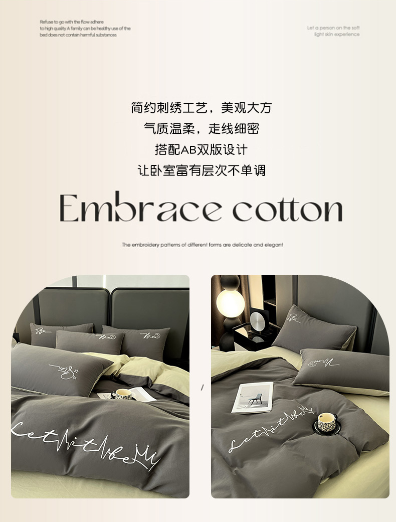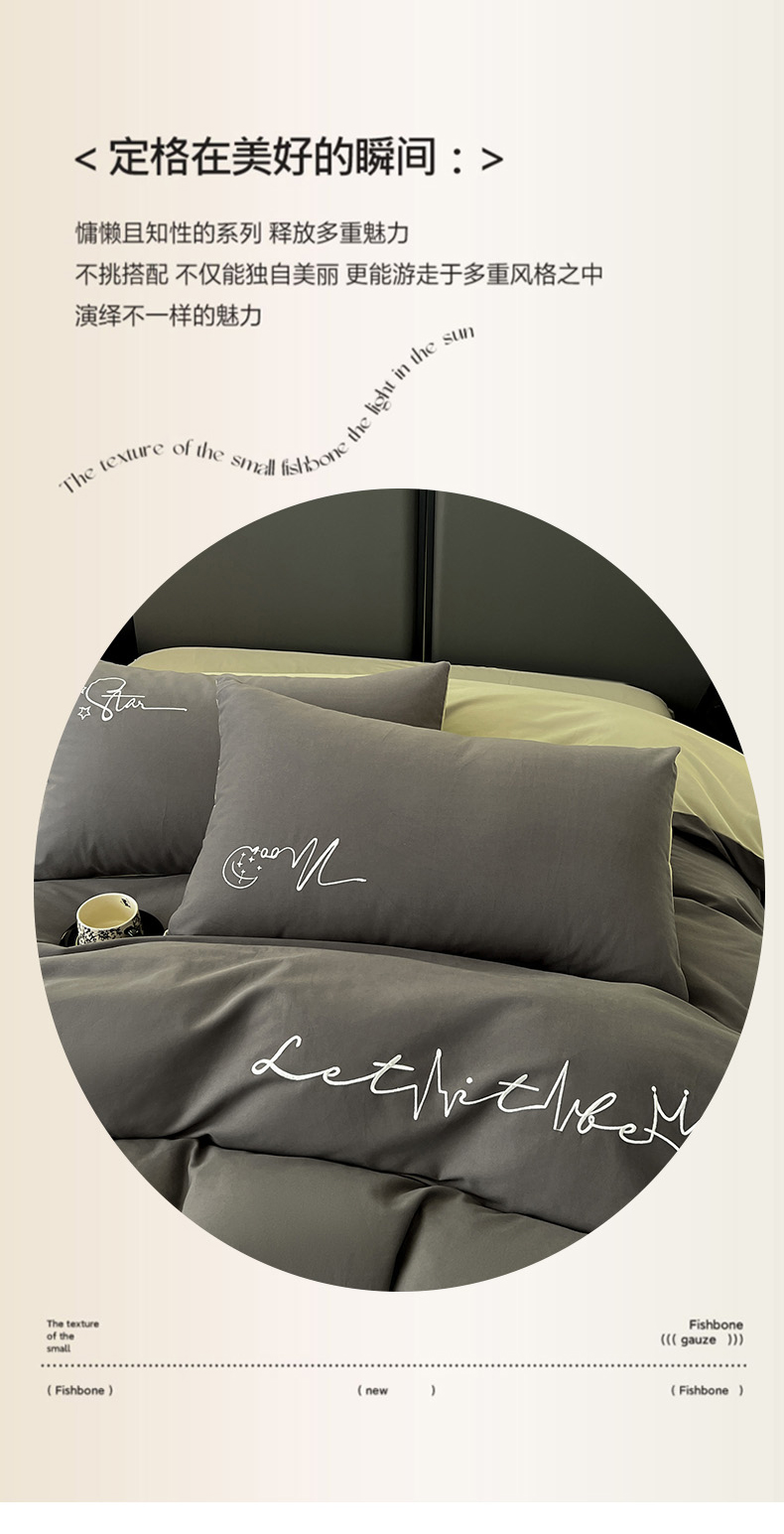 (总)有点武功 2025冬季新款百分百全棉磨毛纯色双拼刺绣四件套小清新风,粉灰,果绿黄,黑绿,浅灰,浅蓝粉,浅蓝青,深蓝灰,深蓝咖