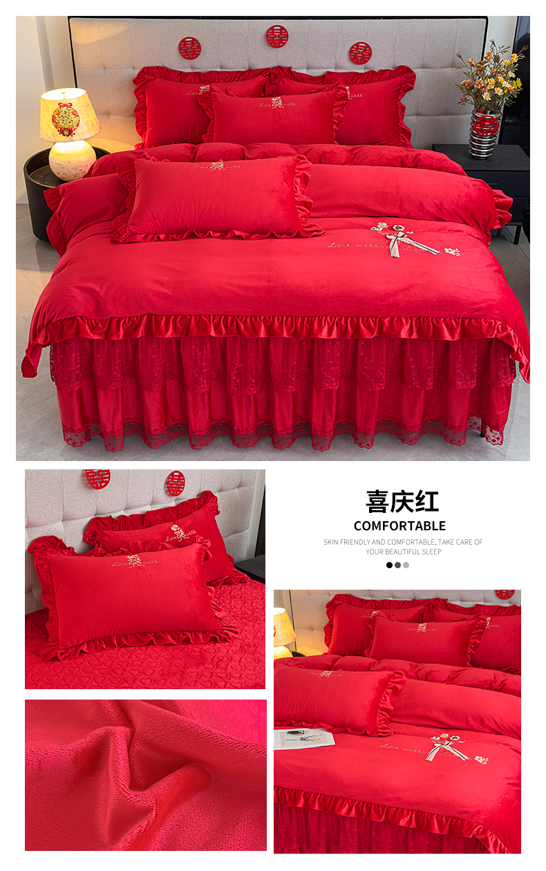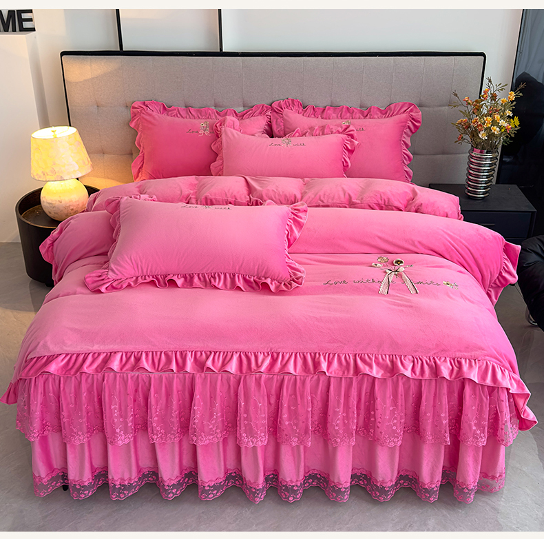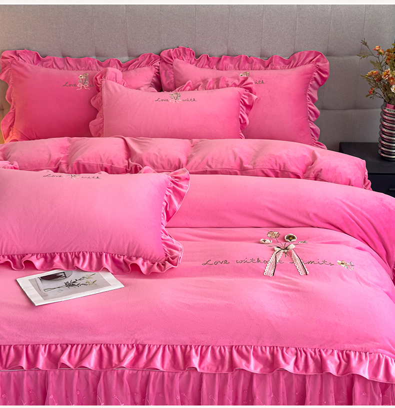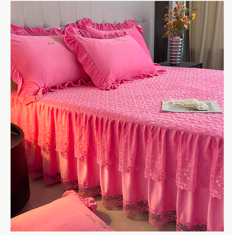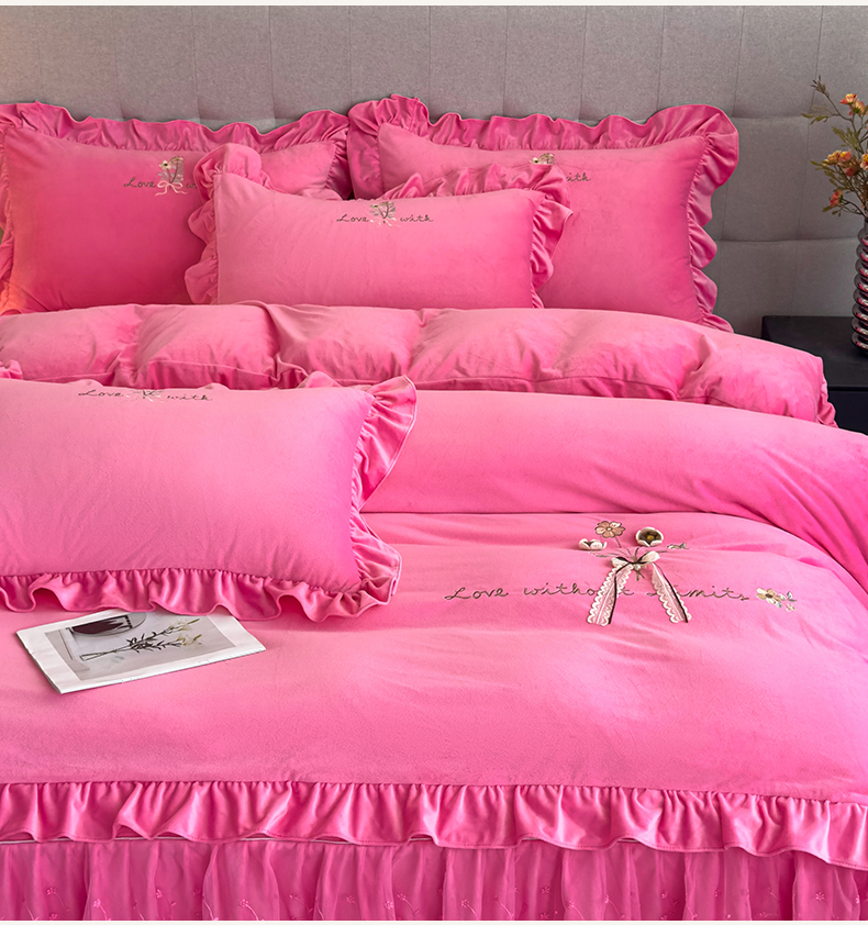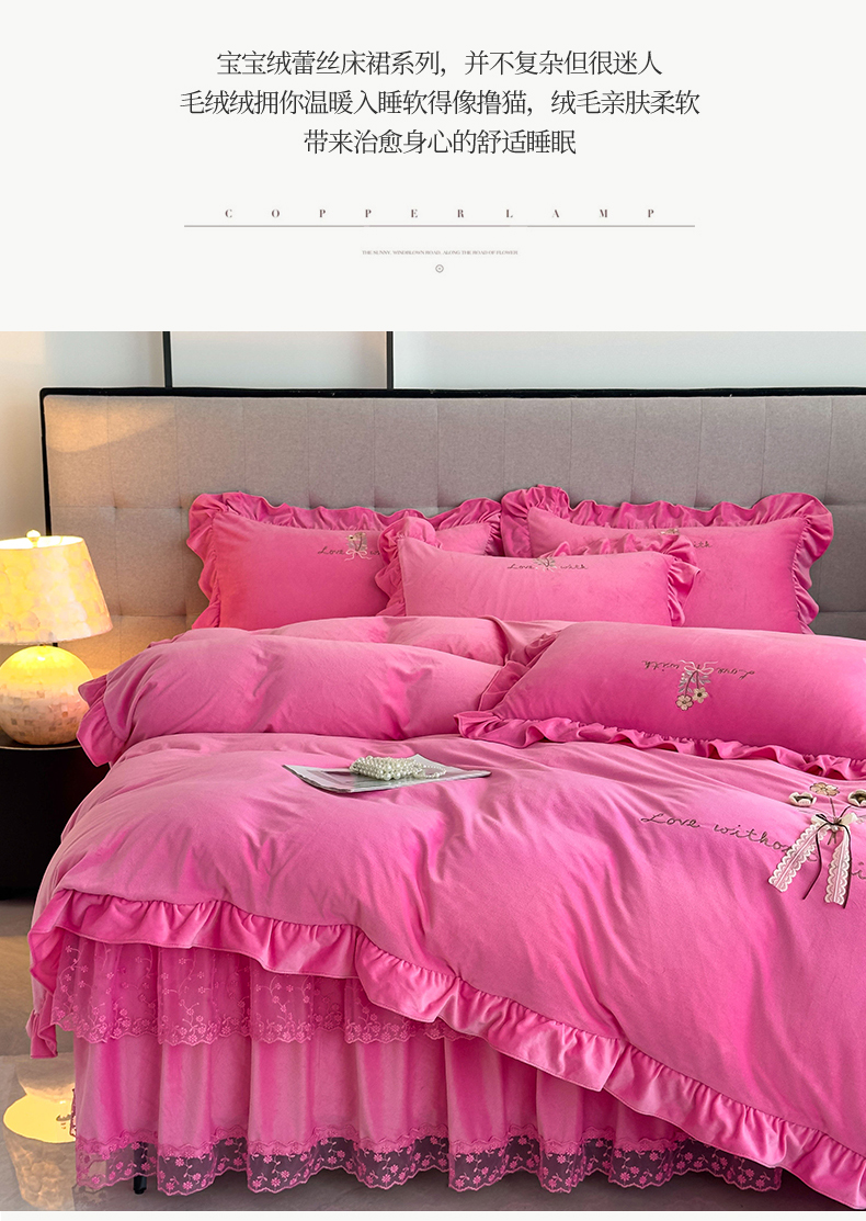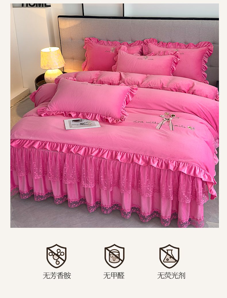 当前位置: 91家纺网 > 商品网购 > 床品套件 > 四件套 > 宝宝绒四件套 > 恒爱家纺 2025新款A类宝宝绒艾薇床裙四件套套件系列 玫瑰红