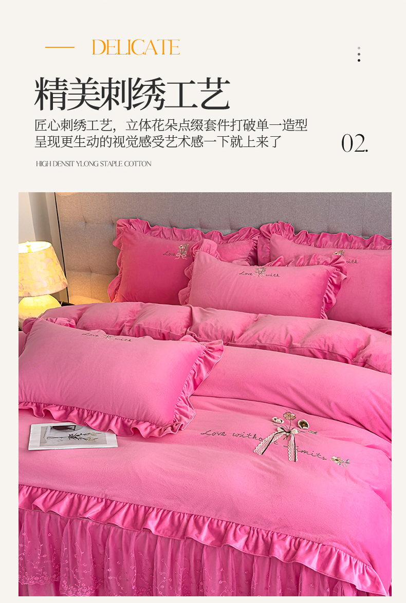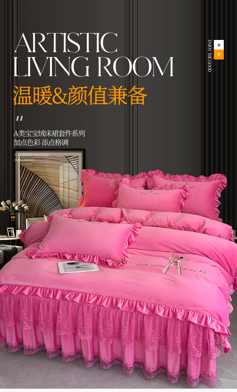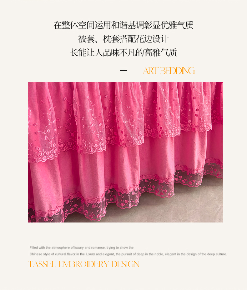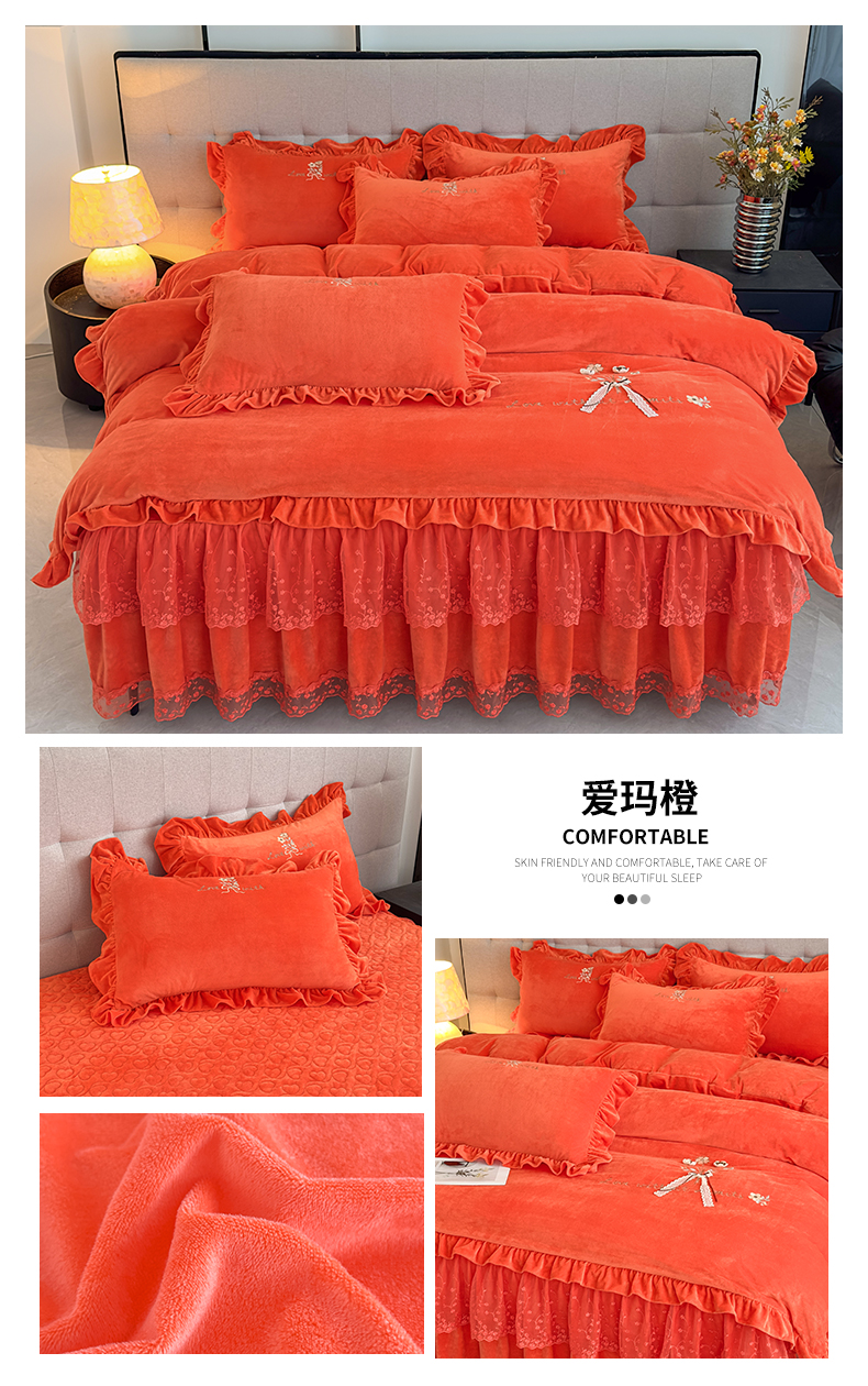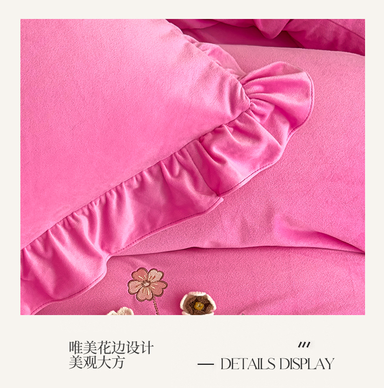 当前位置: 91家纺网 > 商品网购 > 床品套件 > 四件套 > 宝宝绒四件套 > 恒爱家纺 2025新款A类宝宝绒艾薇床裙四件套套件系列 玫瑰红