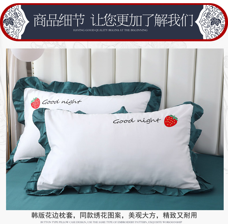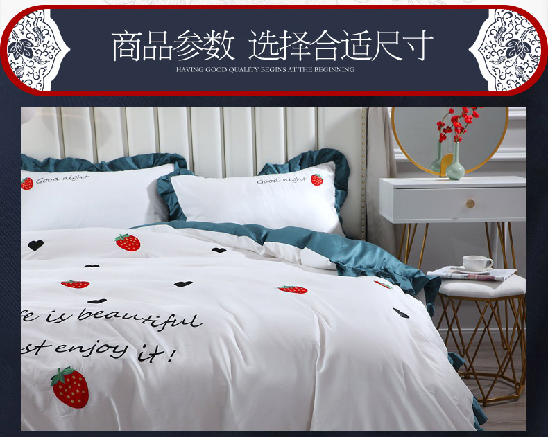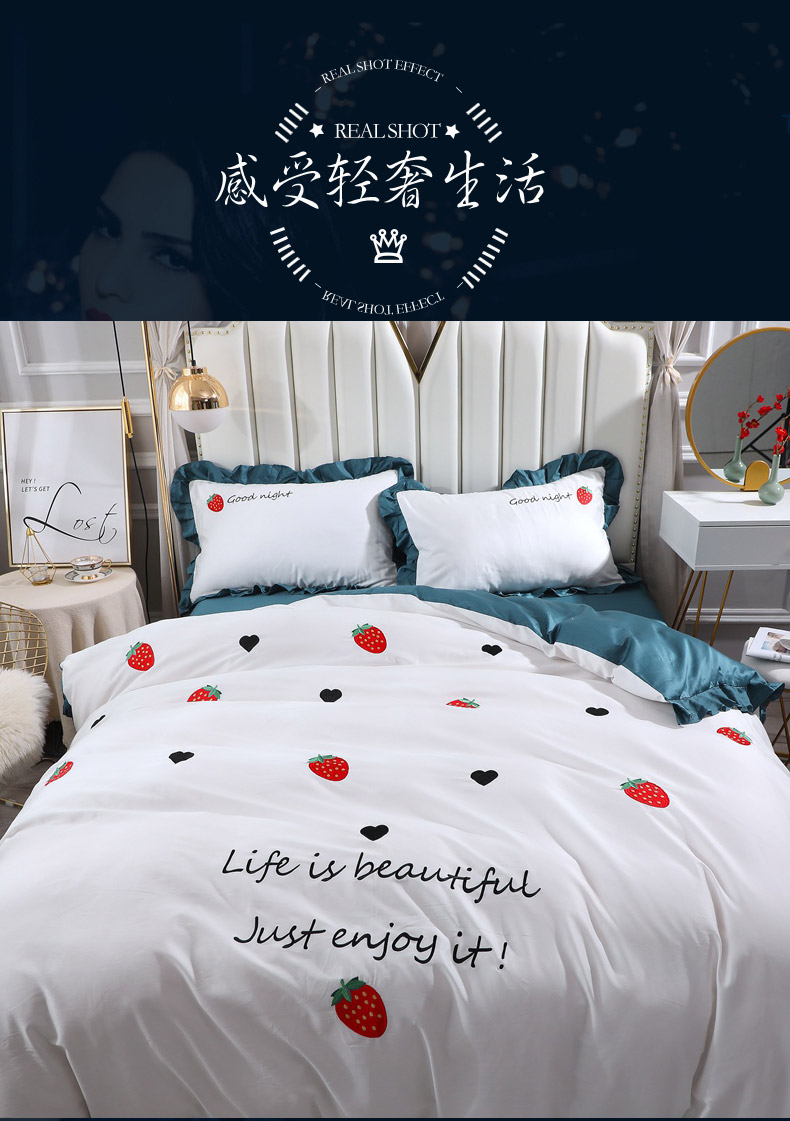 商品名称:晶缦家纺 2025新款韩版纯棉60支全棉贡缎长绒棉绣花四件套 夕夕草莓-宝石蓝