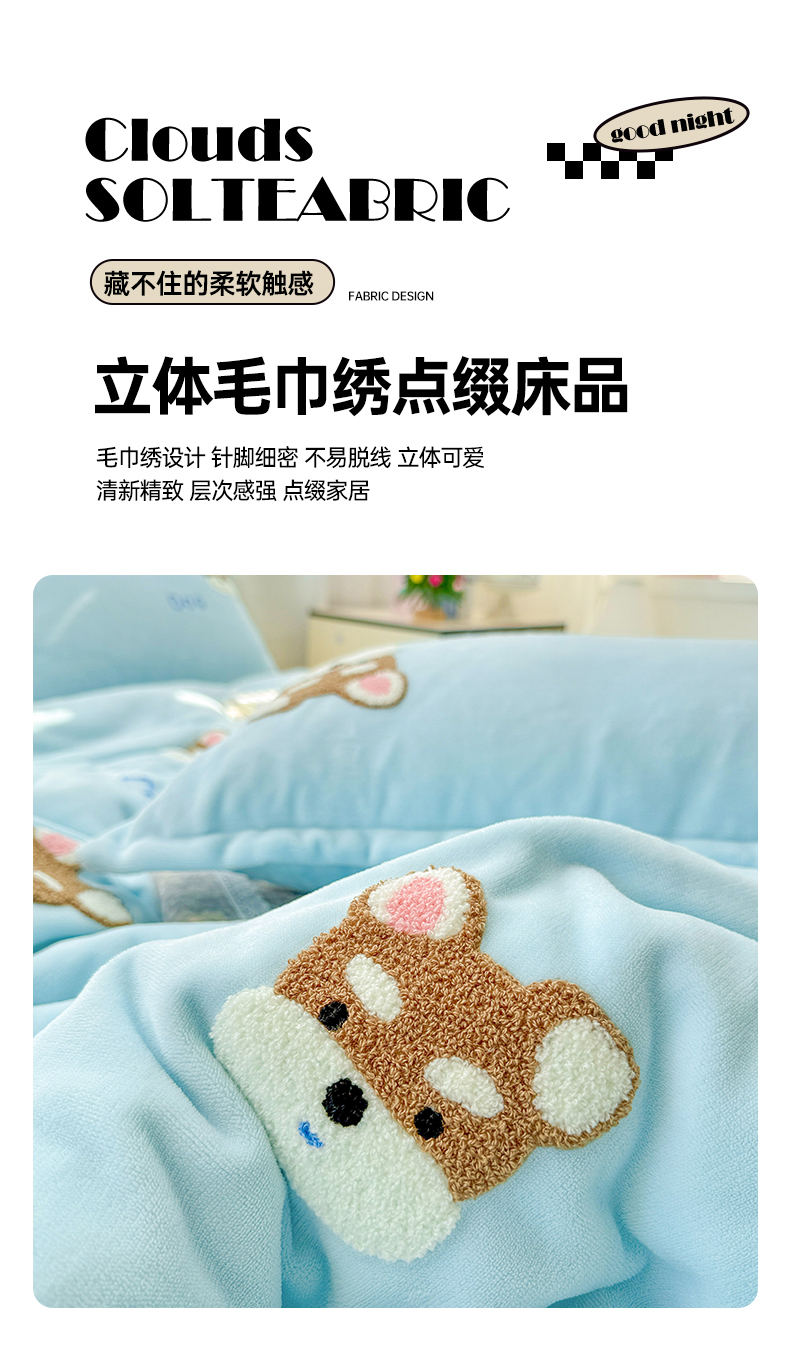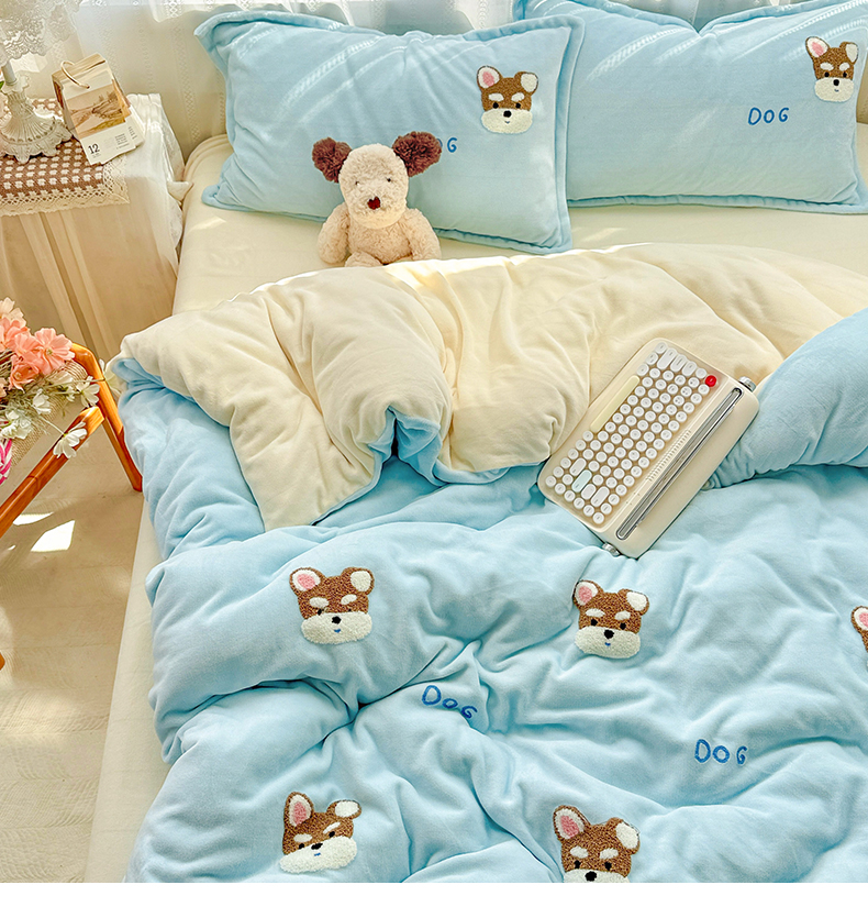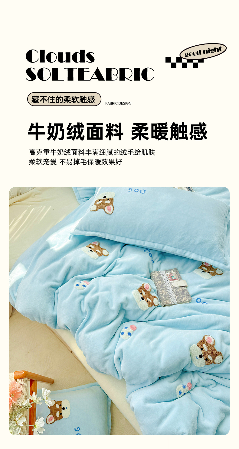 当前位置: 91家纺网 > 商品网购 > 床品套件 > 四件套 > 牛奶绒四件套 > KT猫直营店 2025新款高克重大版毛巾绣牛奶绒卡通四件套 博士小狗