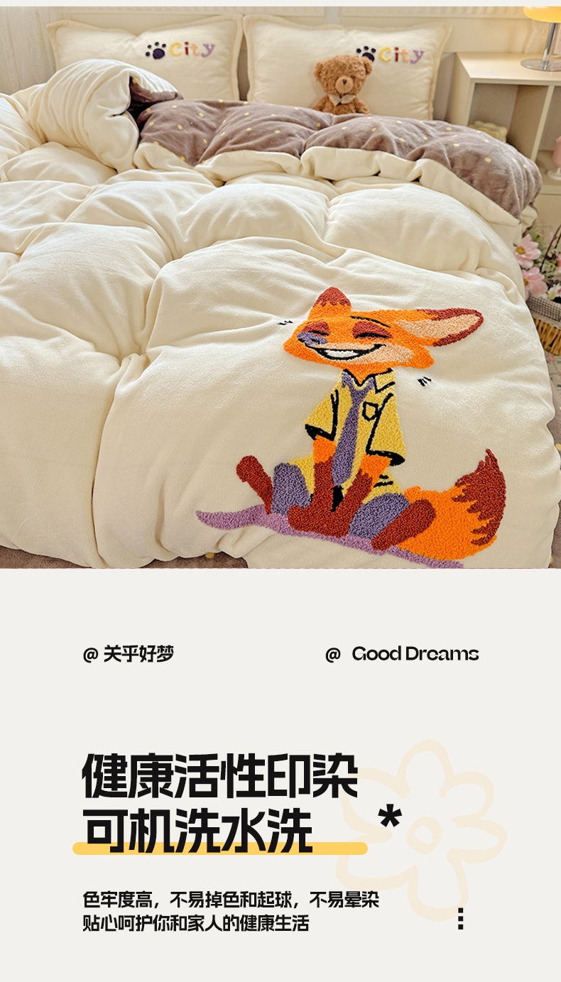 当前位置: 91家纺网 > 商品网购 > 床品套件 > 四件套 > 牛奶绒四件套 > KT猫直营店 2025新款高克重大毛巾绣牛奶绒卡通四件套 笑笑狐