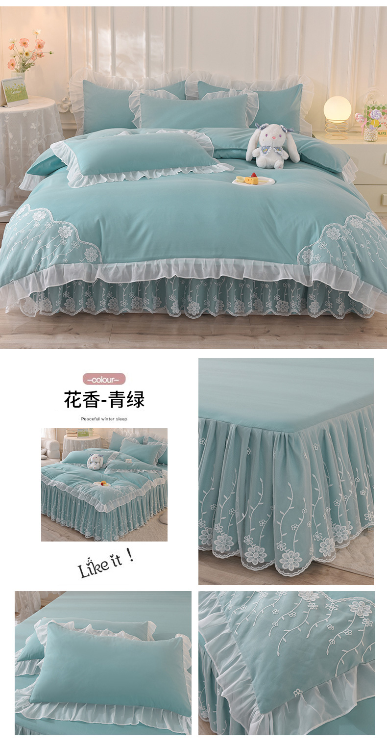 (总)后庭寝室 2025新款韩式花边牛奶绒四件套-香香公主系列,香香公主-嫩玉,香香公主-粉色,香香公主-豆沙,香香公主-粉玉,香香公主-湖蓝,香香公主-暖黄,香香公主-浅灰,香香公主-浅蓝,香香公主-浅紫,香香公主-玉色