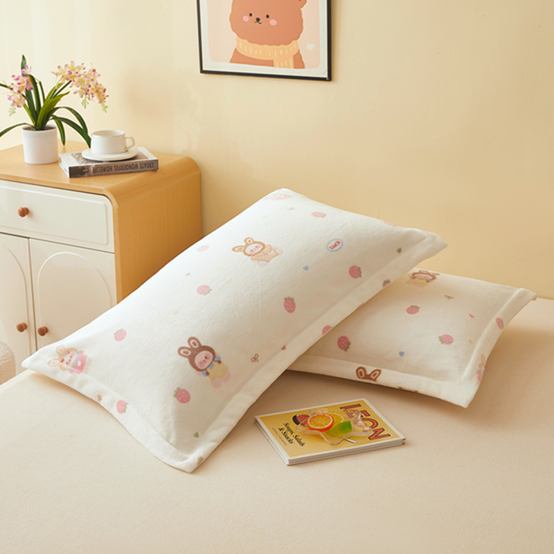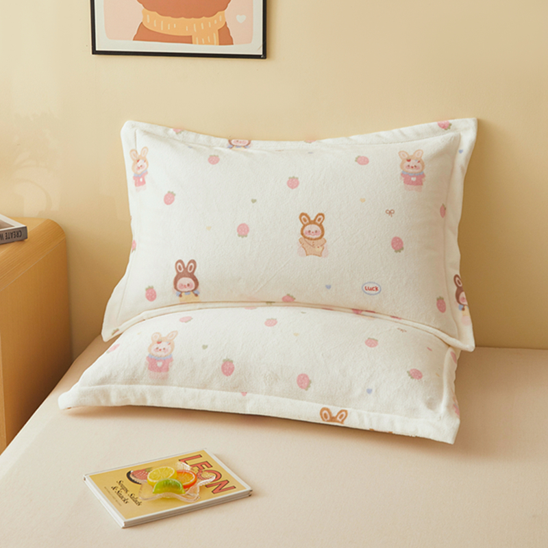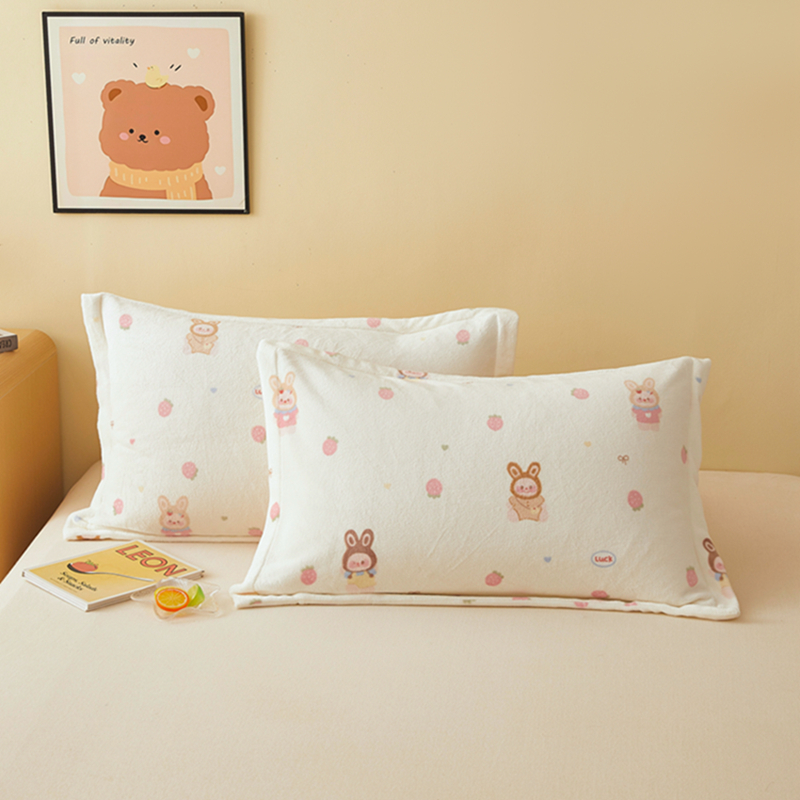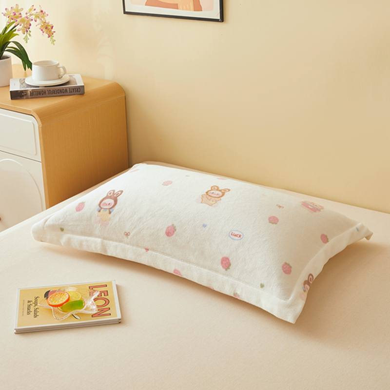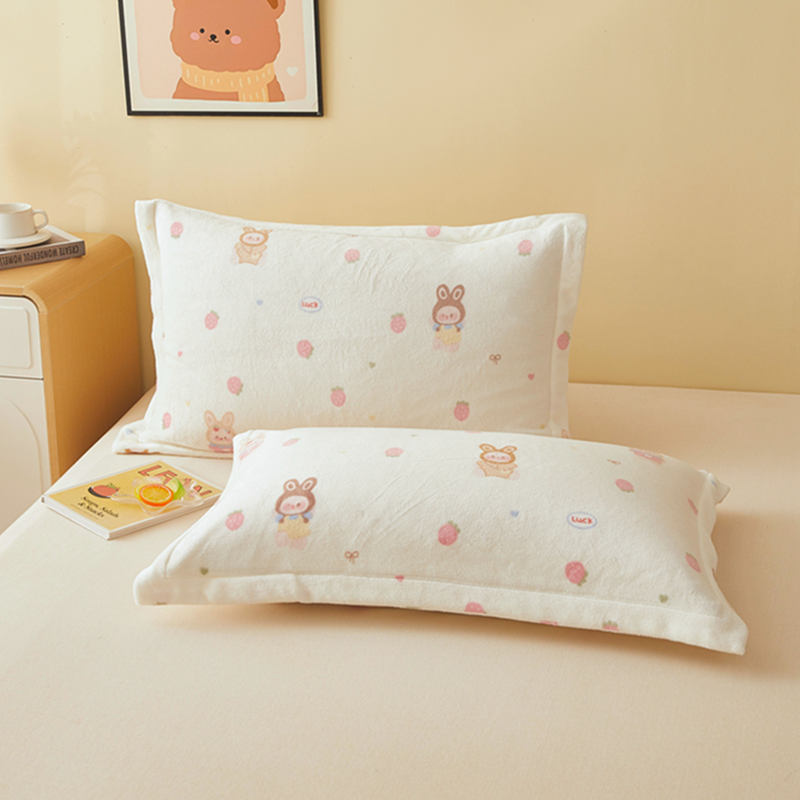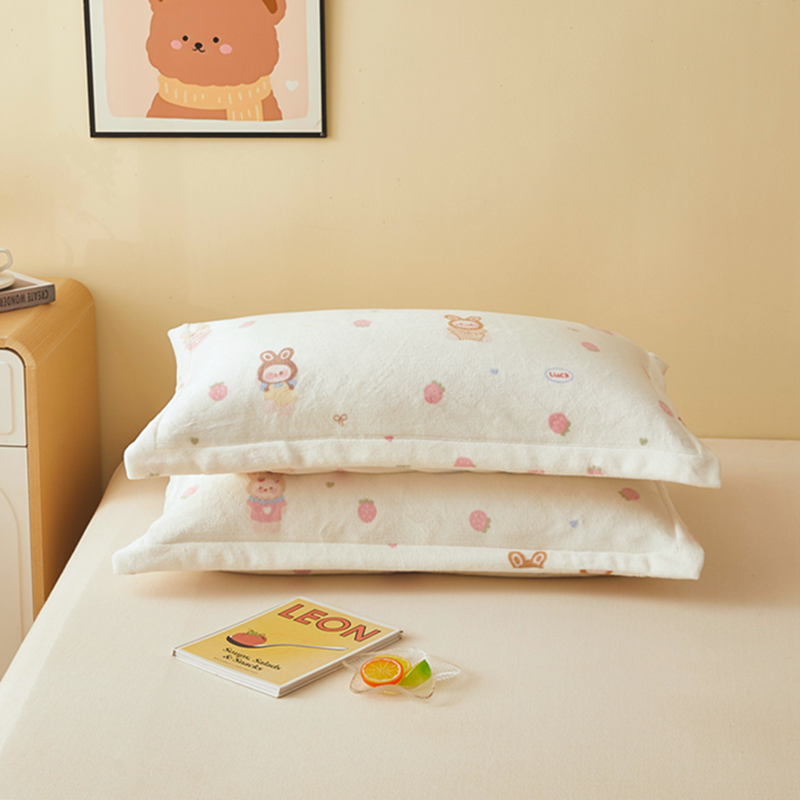 翎盈家纺 2025款加厚高克重牛奶绒枕头套 草莓萌宝