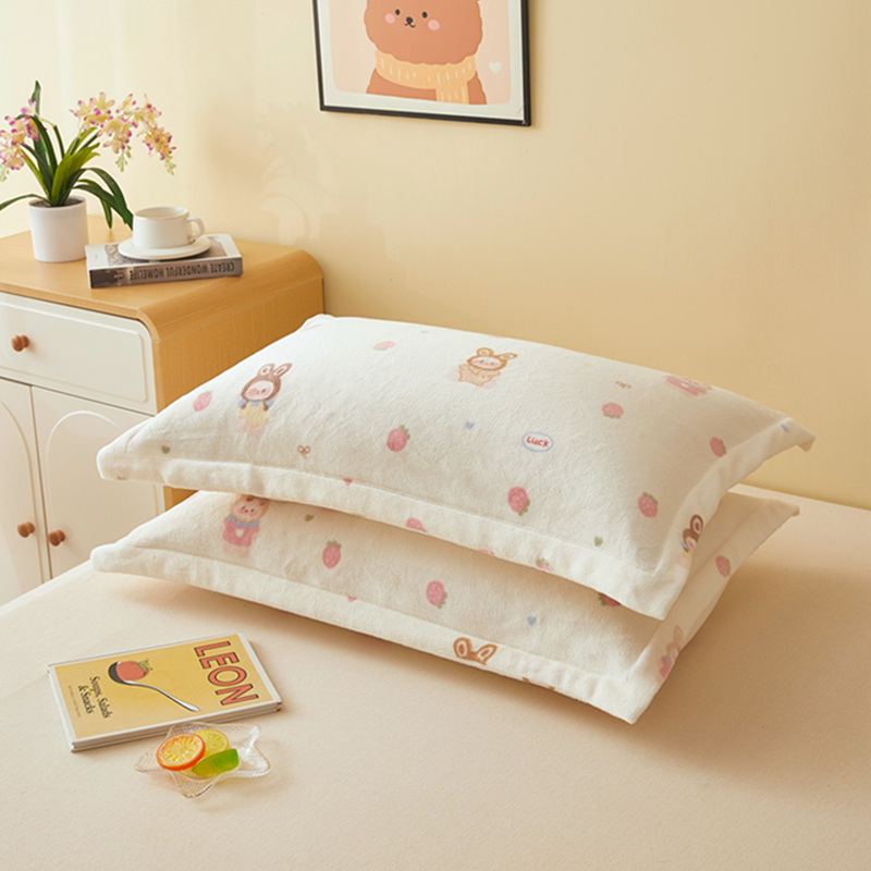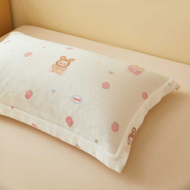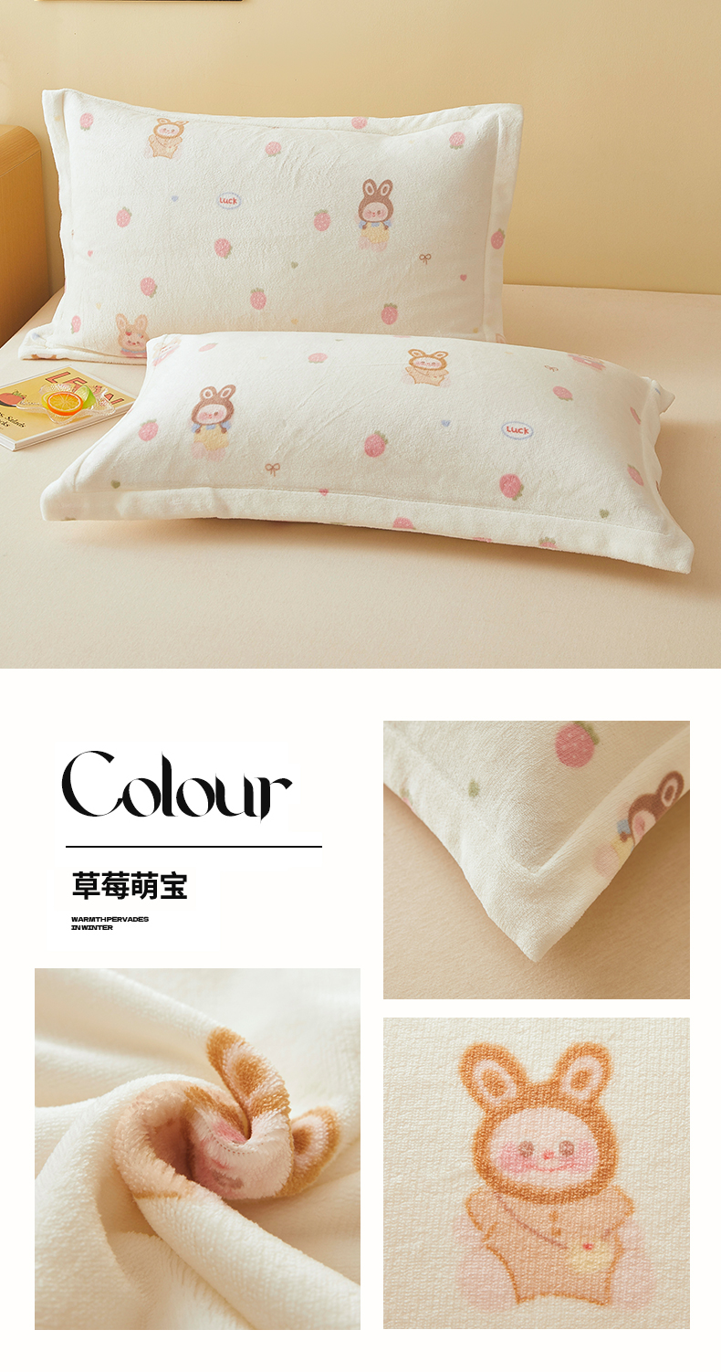商品名称:翎盈家纺 2025款加厚高克重牛奶绒枕头套 草莓萌宝