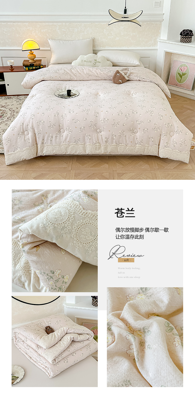 (总)芯恋 25年新款亚麻风全棉花边云感冬被四季被加厚冬被,苍兰,瑰丽,花弄影,花影,蒹葭,落霞,晚秋,云清