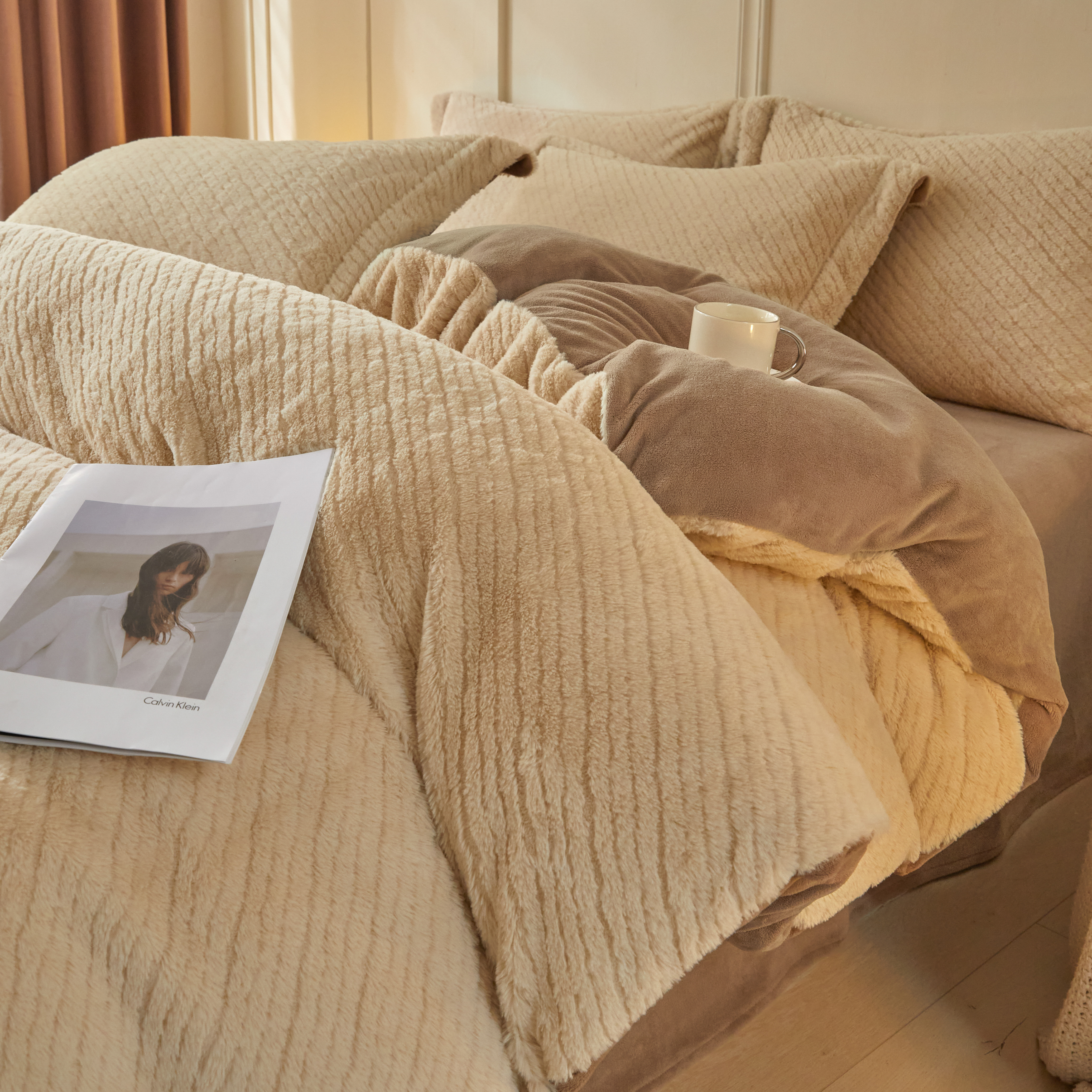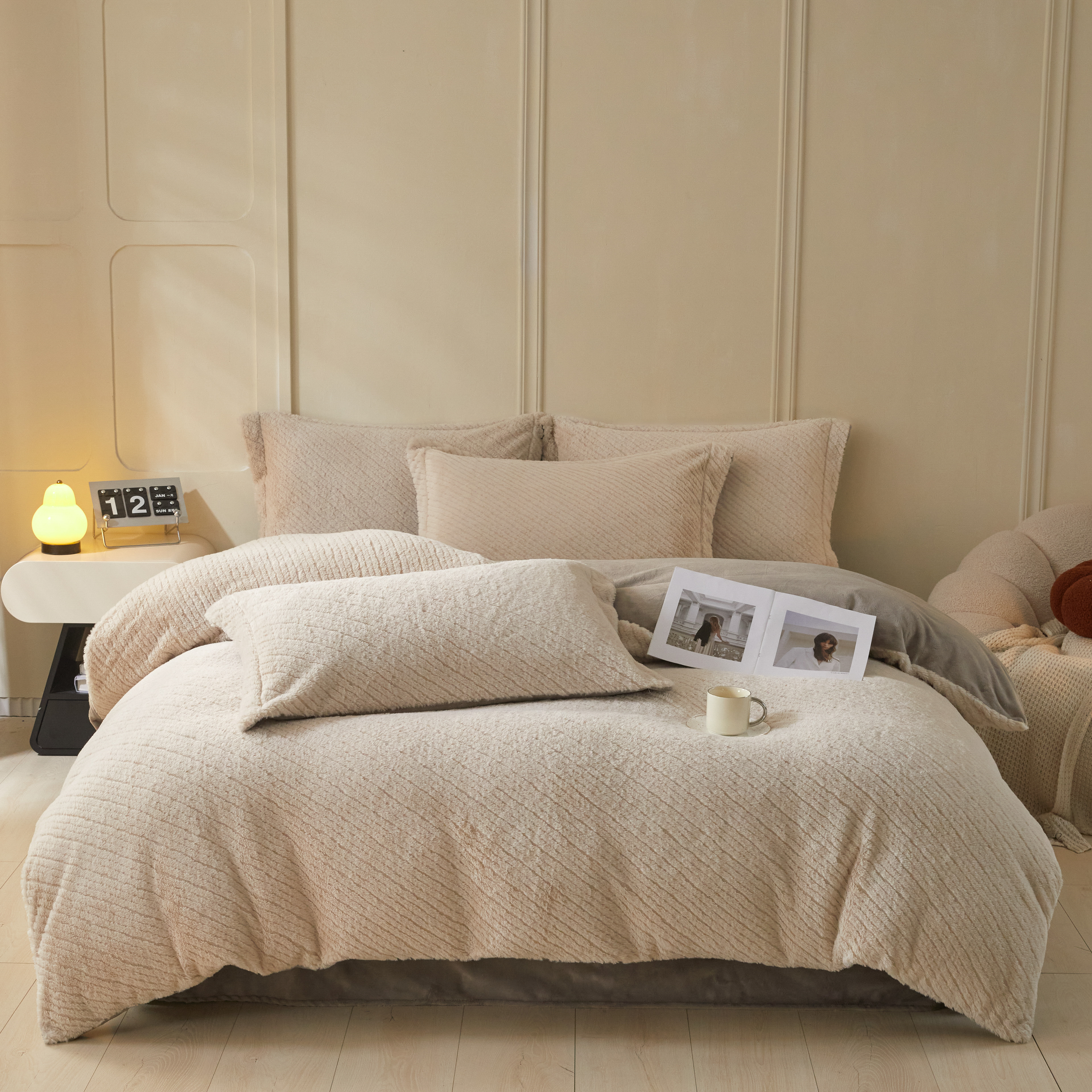 商品名称:凯罗 2025新款高克重兔绒四件套A类牛奶绒四件套 简约轻奢兔绒四件套 亚薇拉-柯南灰
