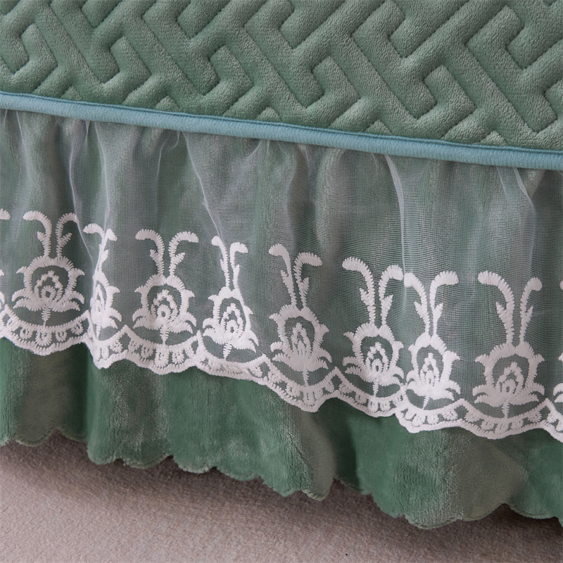 商品名称:畅畅家纺 2025新款11斤纯色韩版冬季超柔加厚牛奶花边床盖四件套 果绿
