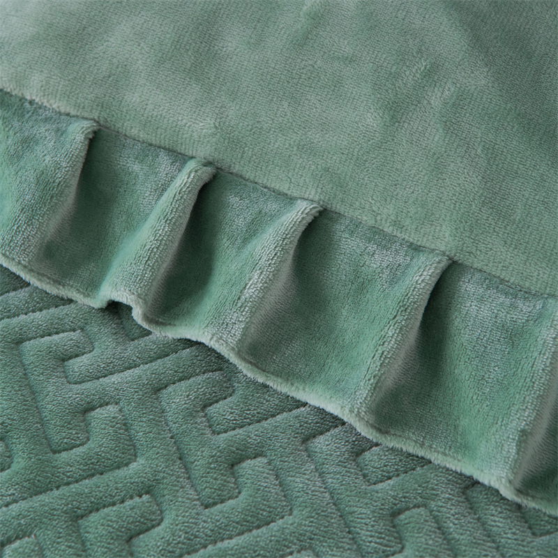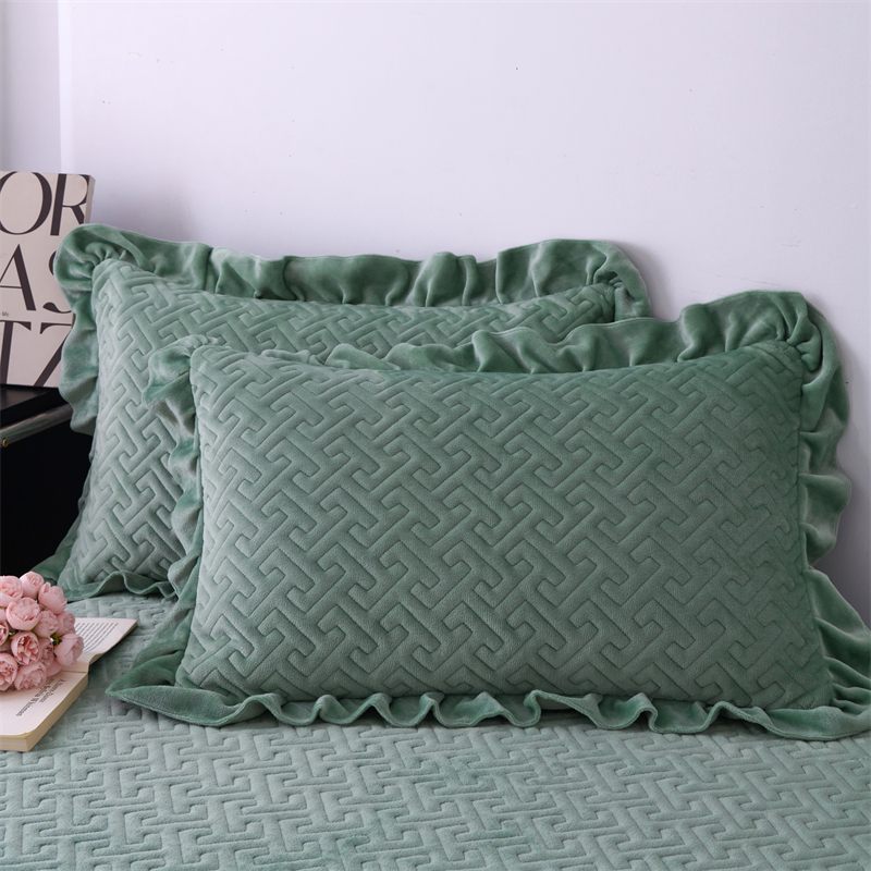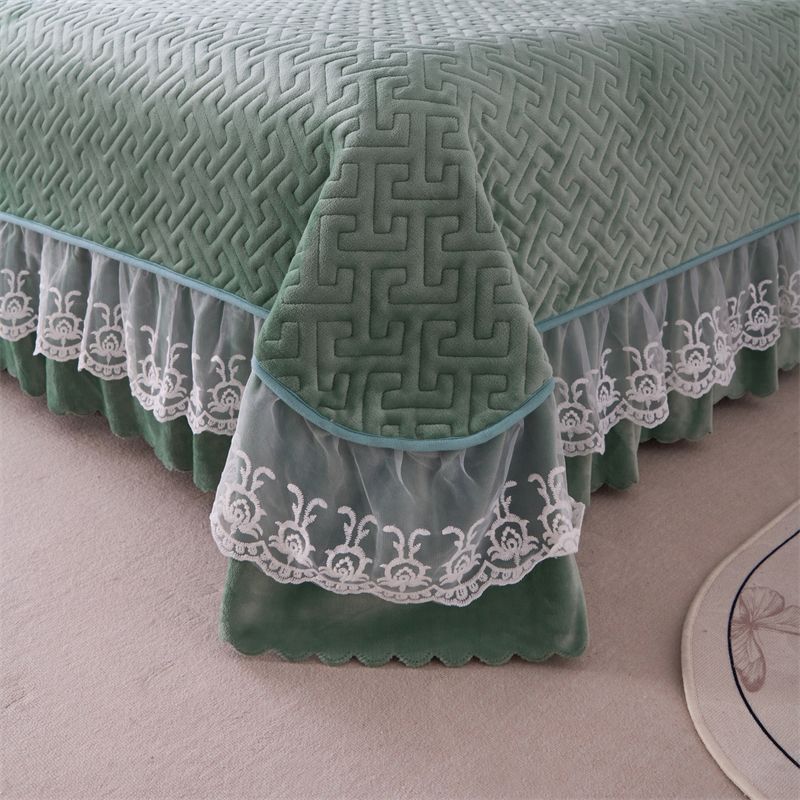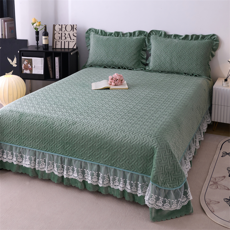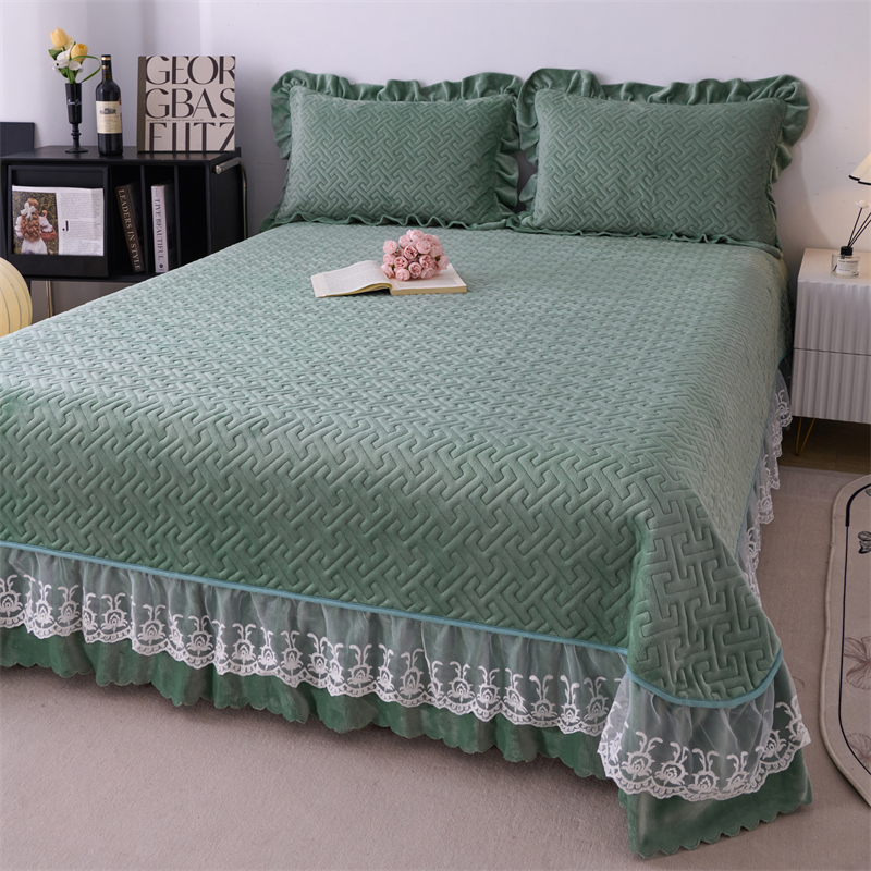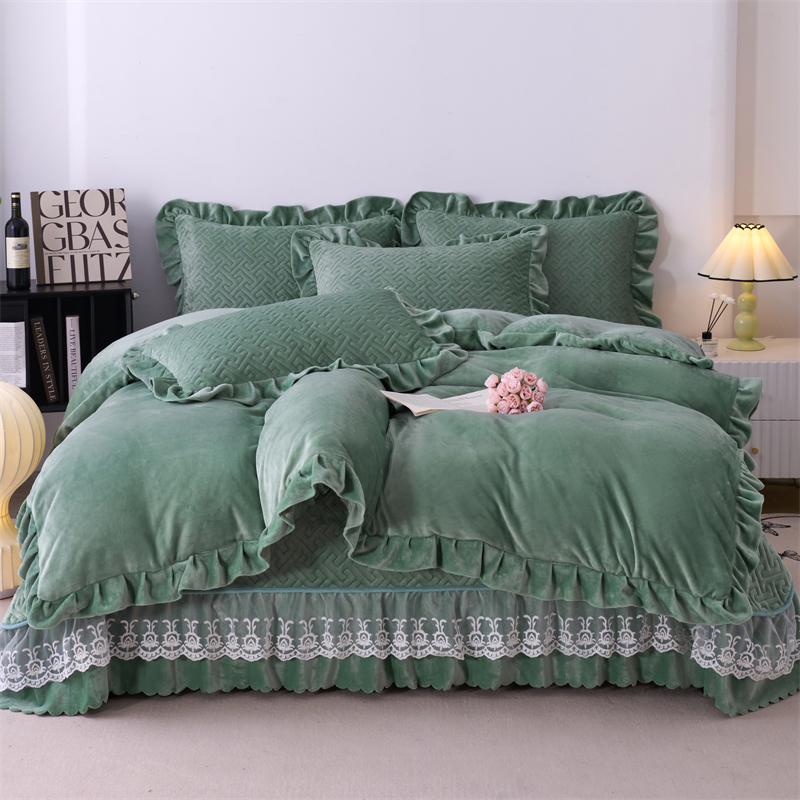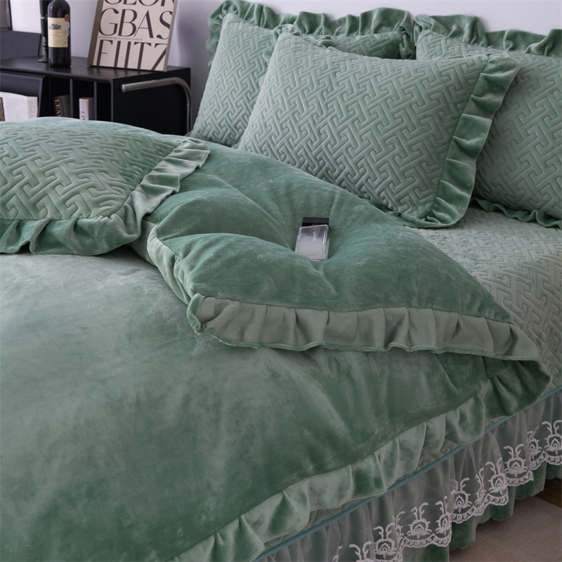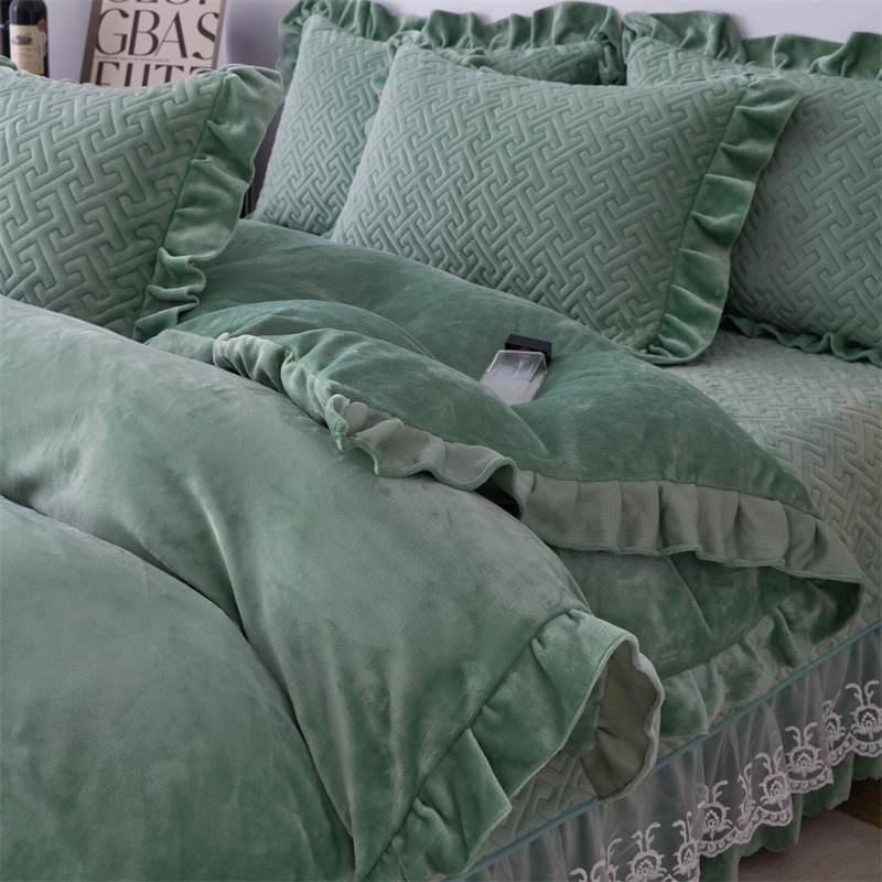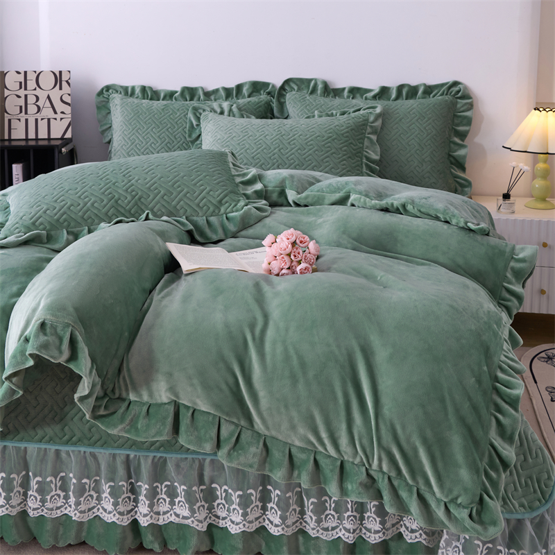 畅畅家纺 2025新款11斤纯色韩版冬季超柔加厚牛奶花边床盖四件套 果绿