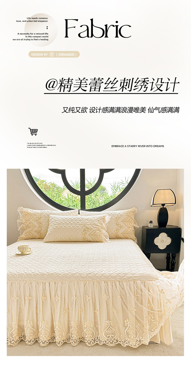 床上用品 > 床裙 > (总)罗艺轩 2025新款全棉纯棉蕾丝刺绣琉璃单床裙床裙单件(1.5m控价135起、1.8m控价140起、1.8*2.2m控价145起、2.0m控价150起)