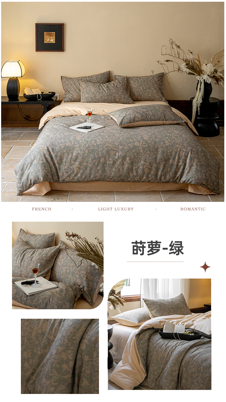 商品名称:禾时 2025新款全棉贡缎磨毛数码印花四件套 莳萝-绿