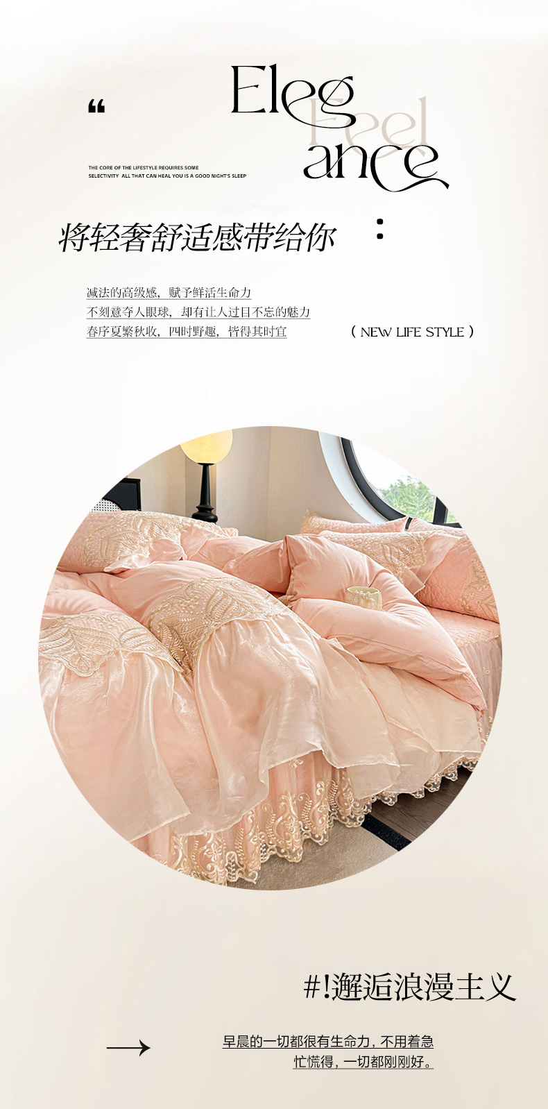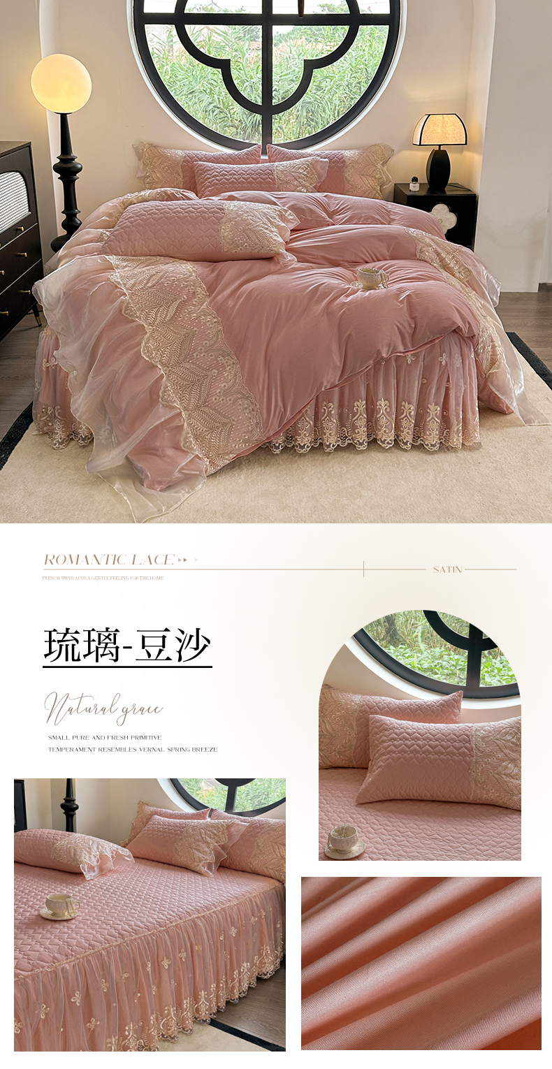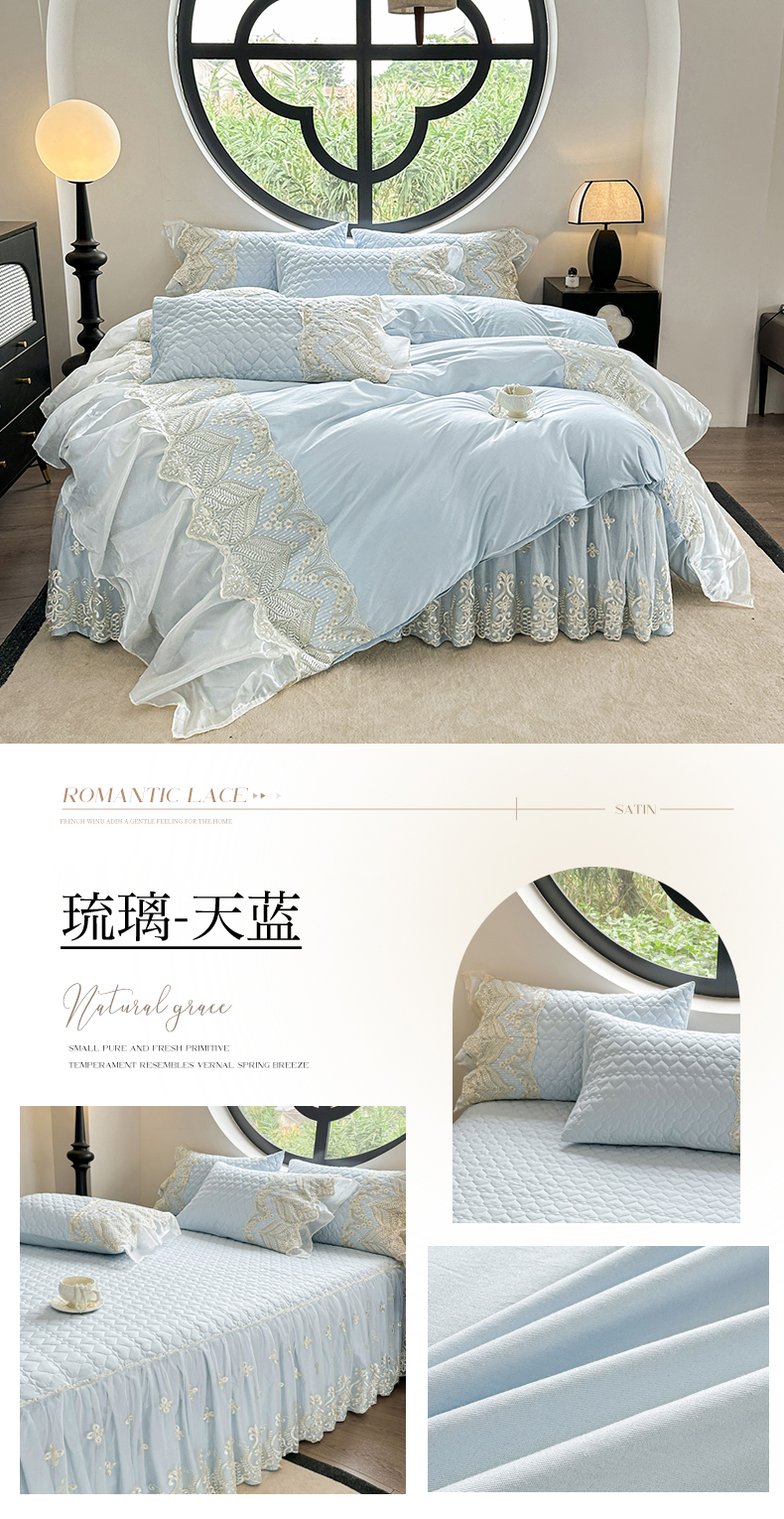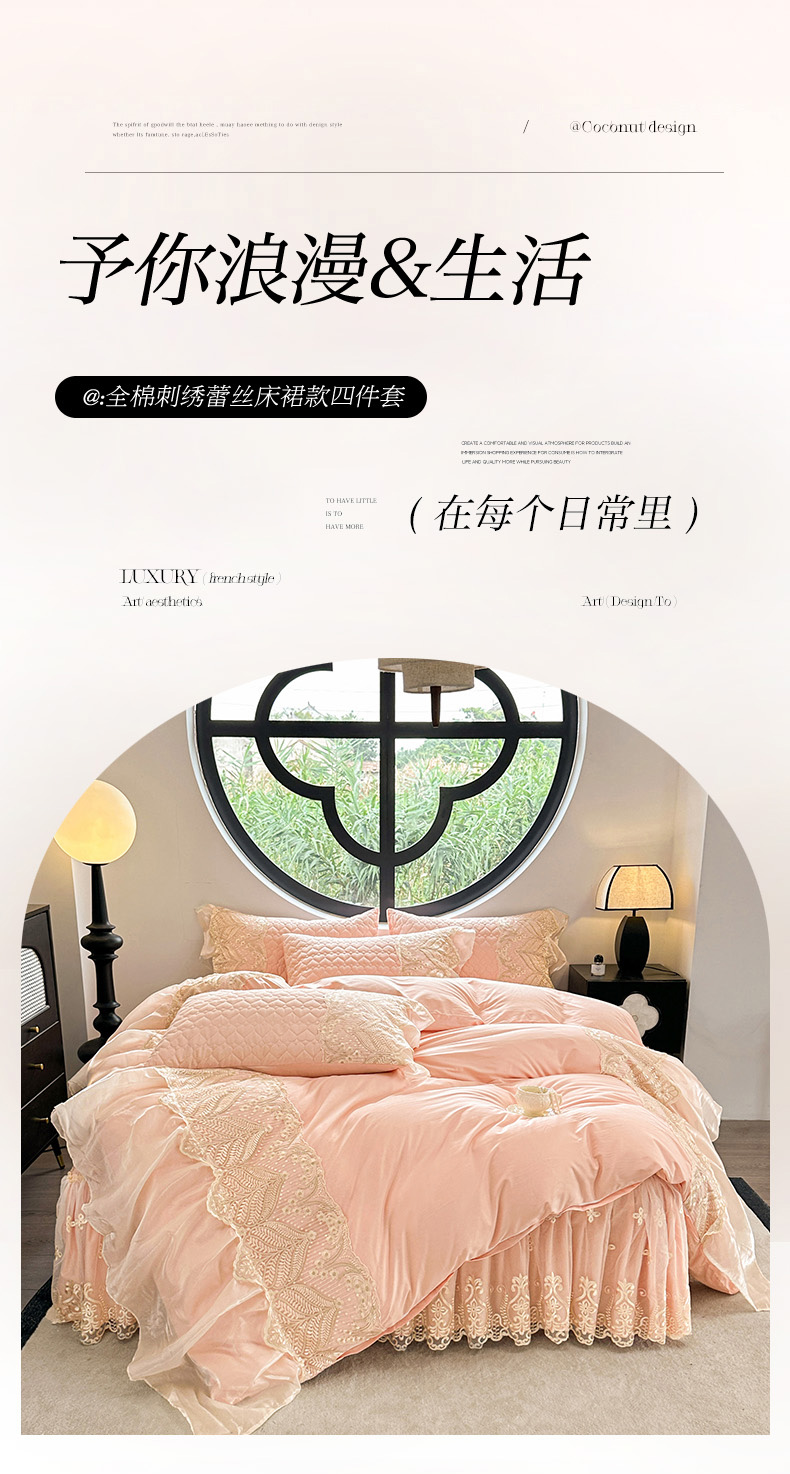 • 91家纺网 家纺一手货源 找家纺 罗艺轩 2025新款全棉纯棉蕾丝刺绣琉璃床裙四件套(1.5m控价288起、1.8m控价293起、1.8m加大控价303起、1.8*2.2m控价298起、1.8*2.2m加大控价308起、2.0m控价3