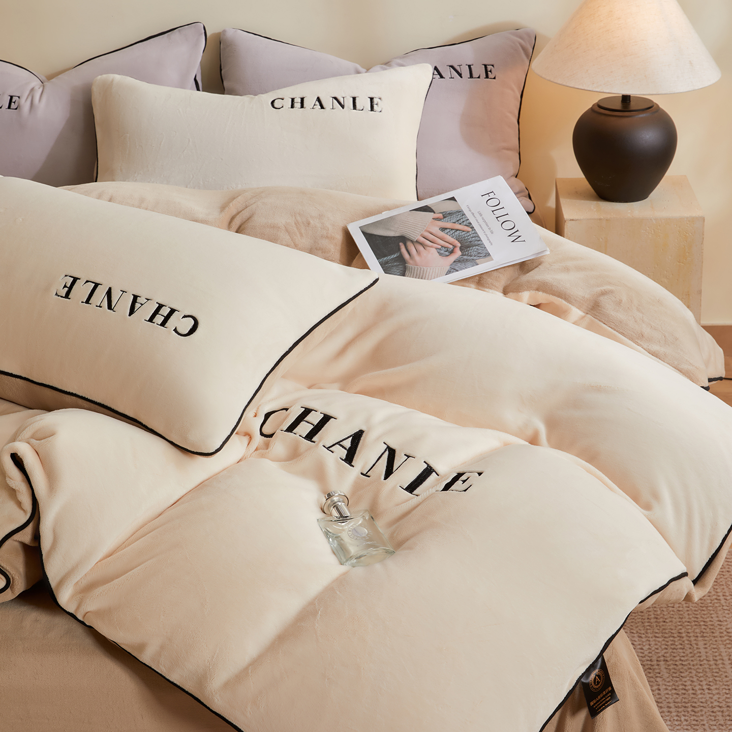 锦禾穗 2023新款牛奶绒四件套-丹麦貂 丹麦貂-白色,丹麦貂-白色