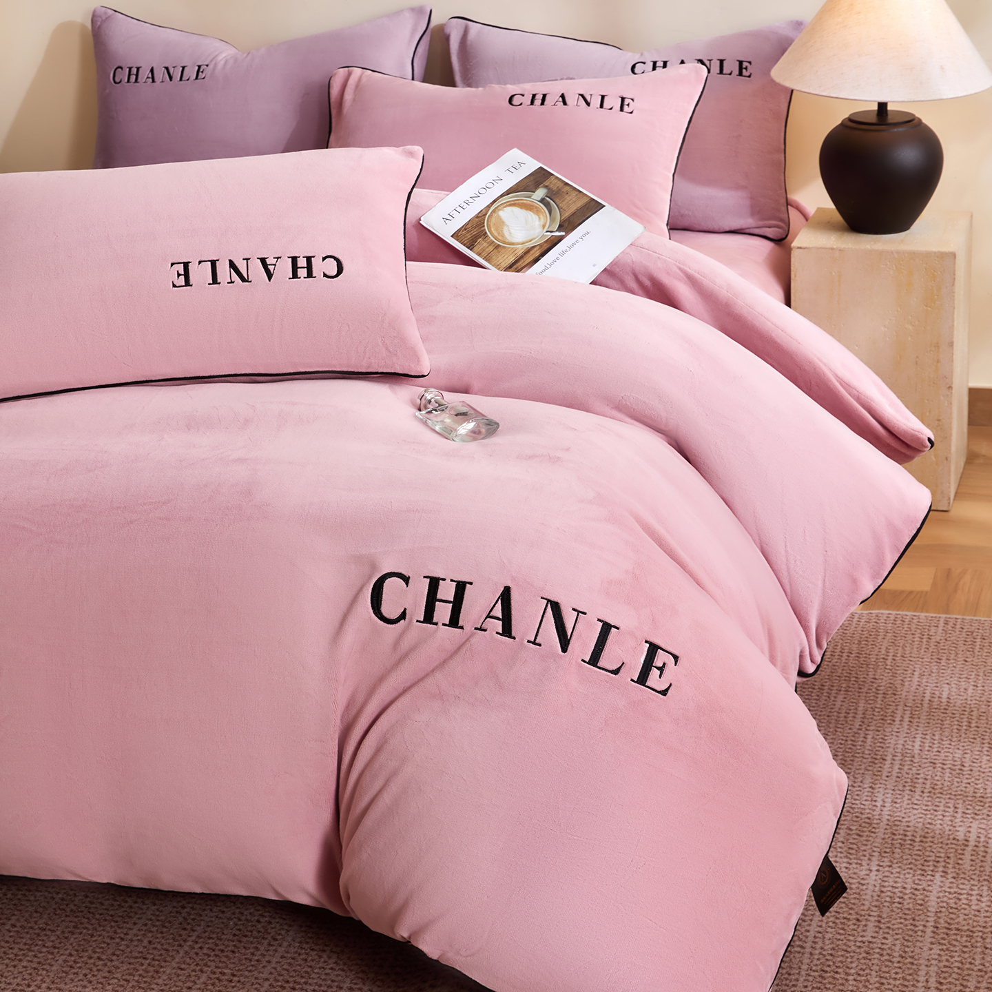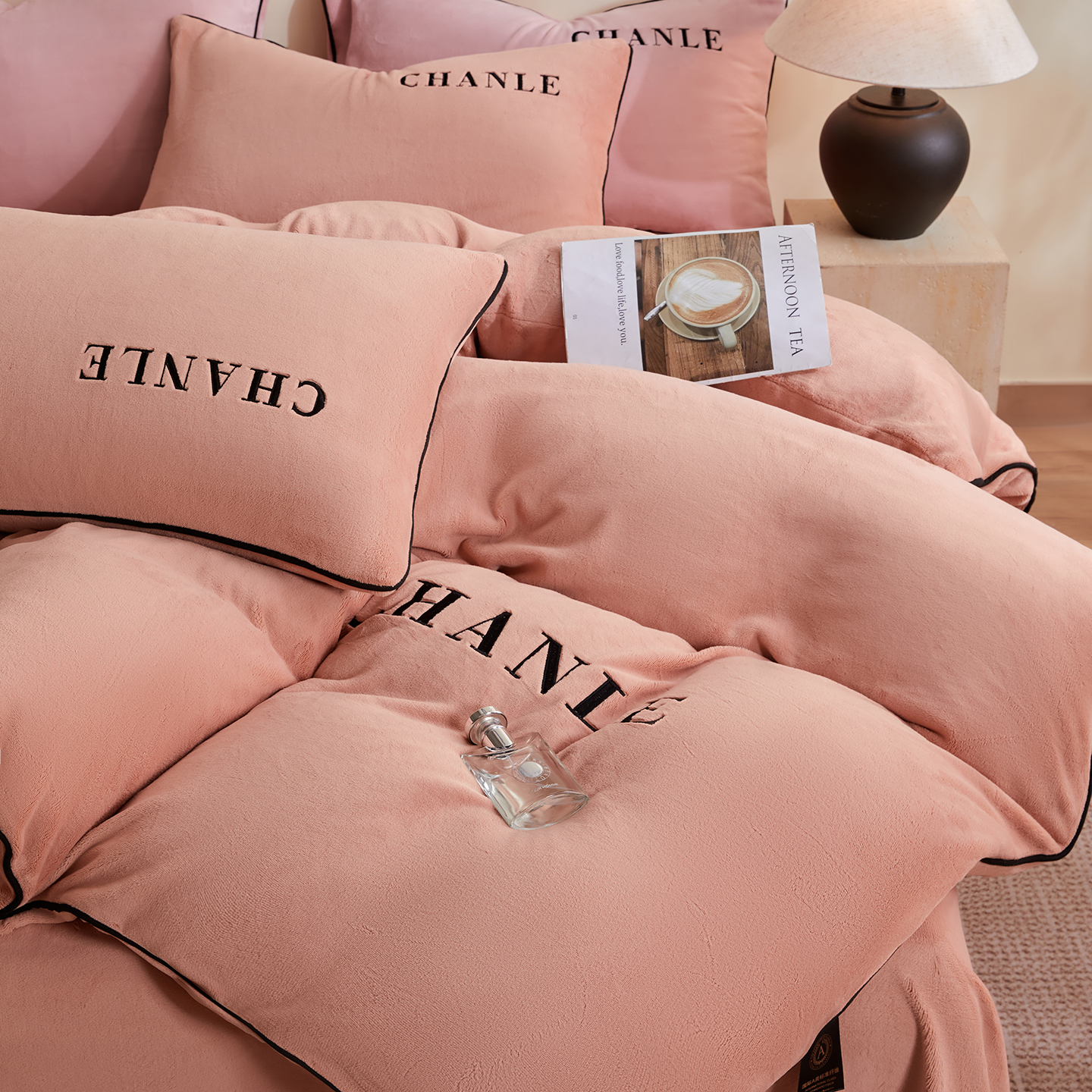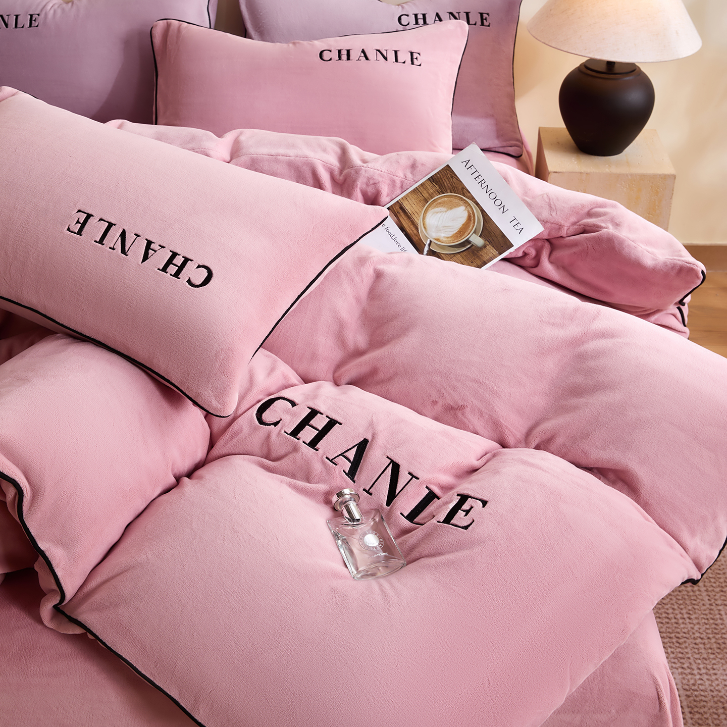 锦禾穗 2023新款牛奶绒四件套-丹麦貂 慕倾-粉色,慕倾-粉色