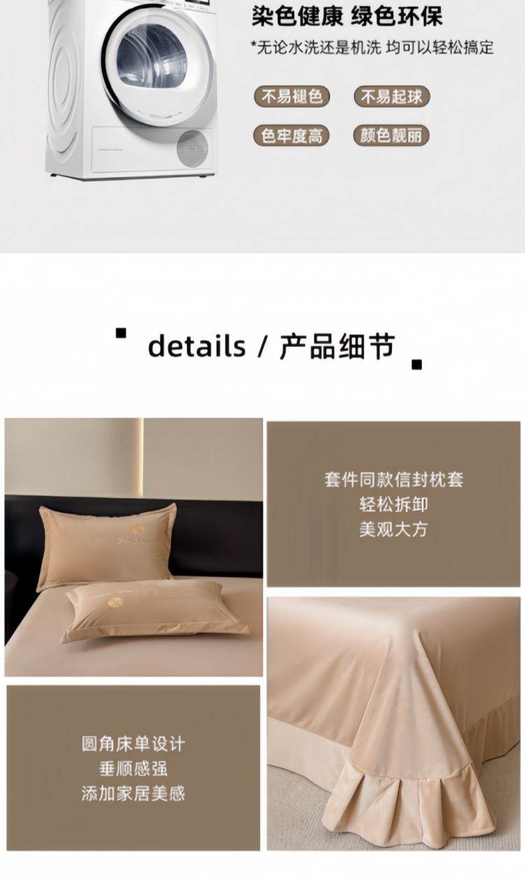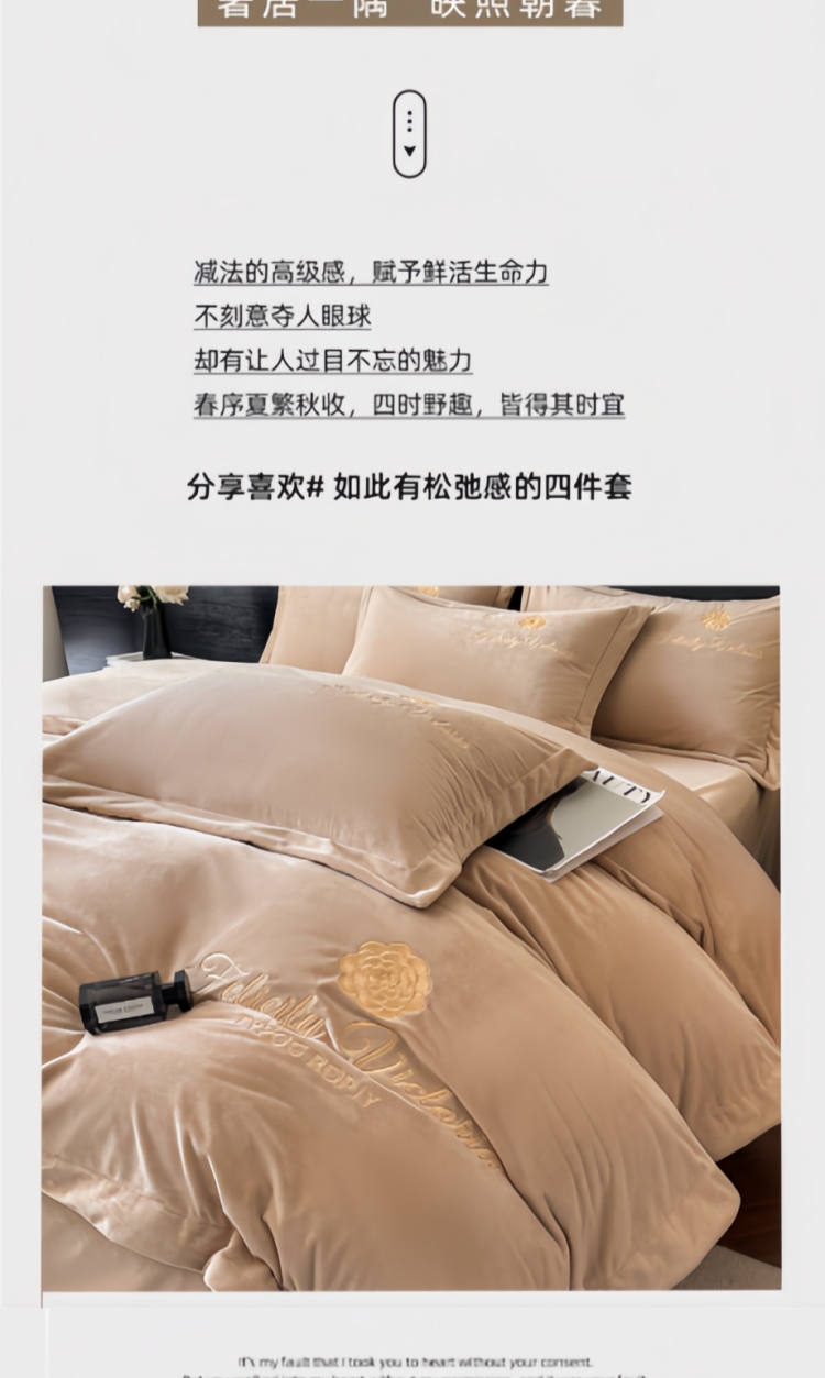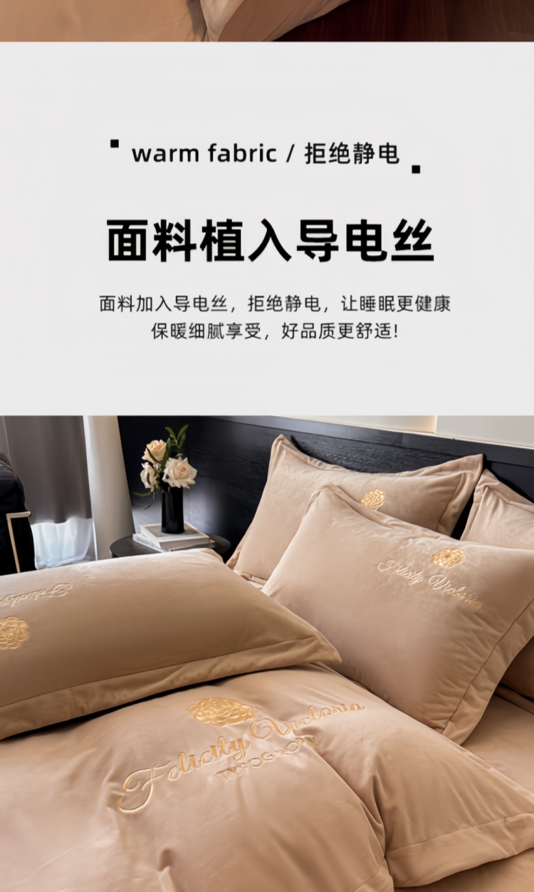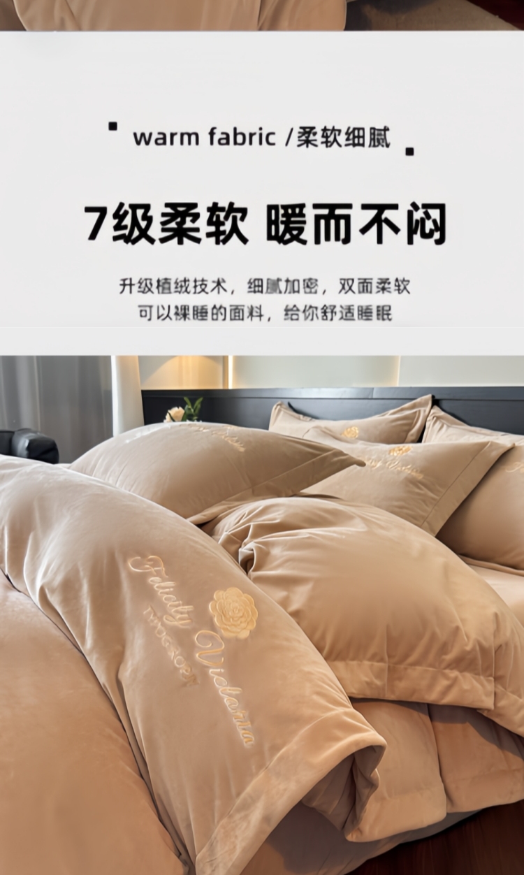 商品名称:鸿织源2025新款-茶颜系列 宝宝绒宽边四件套 茶颜-香槟咖