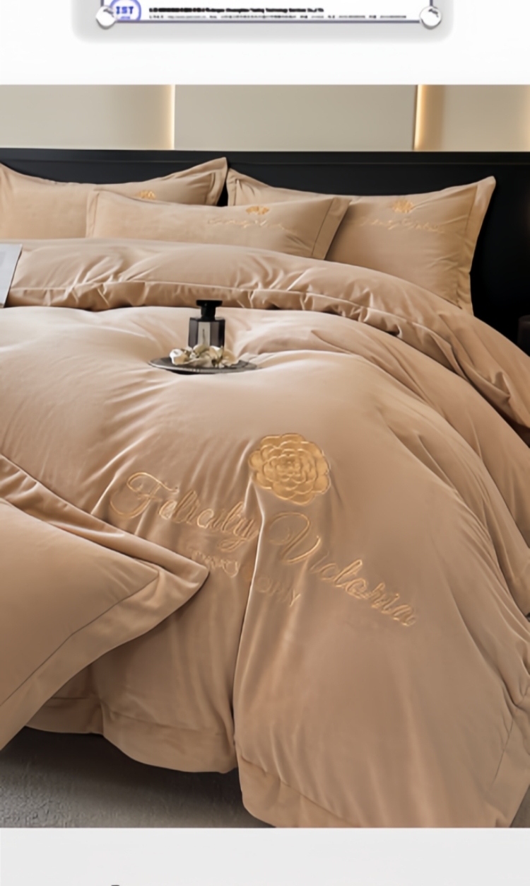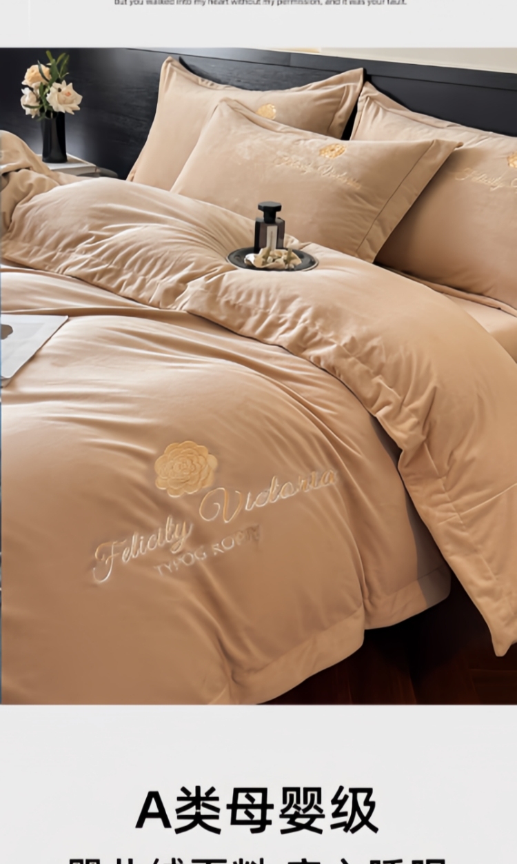鸿织源家纺 2025新款230g全消光牛奶绒刺绣四件套 豆沙,豆沙