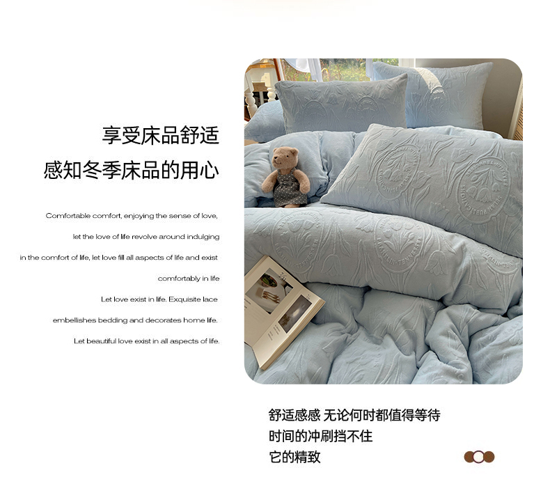 (总)六巷胡同 2025新款INS博主风郁金香立体A类全消光雕花牛奶绒四件套