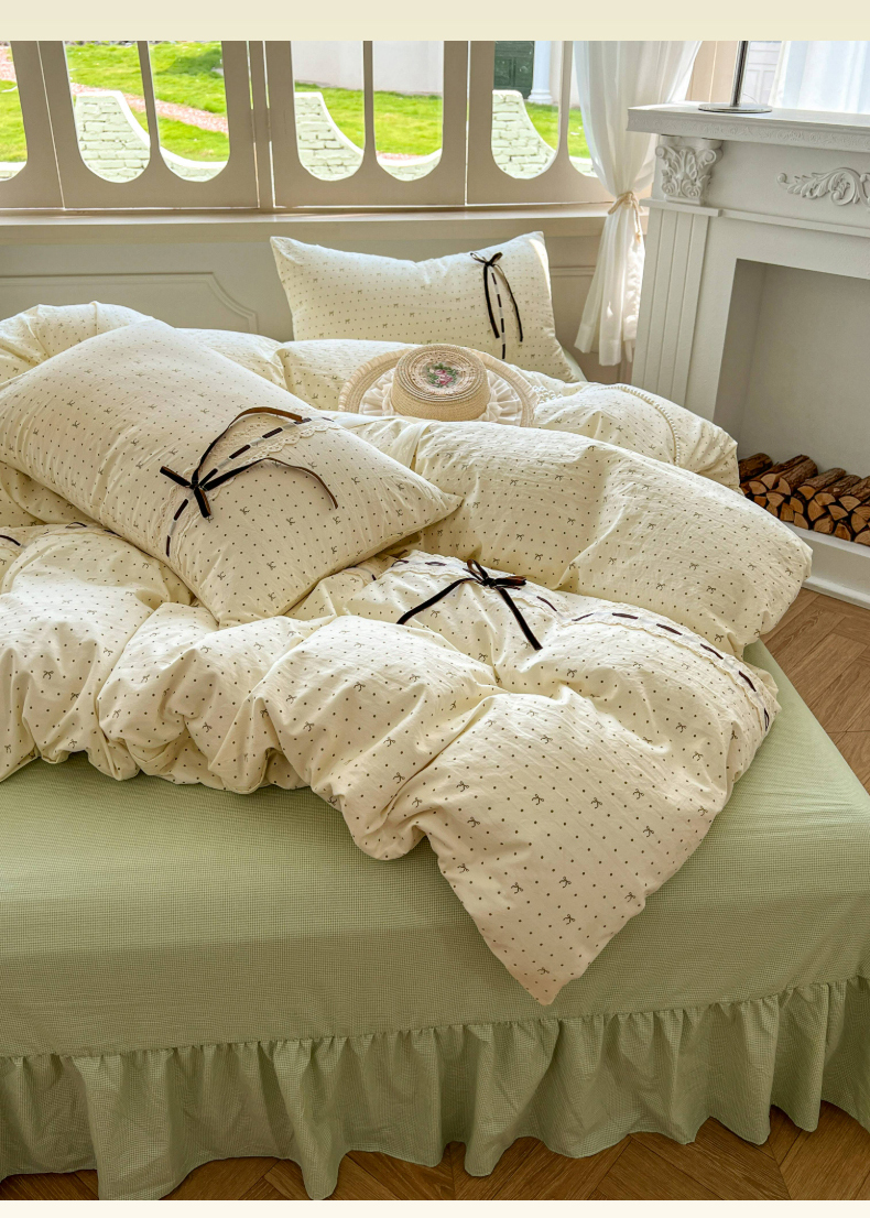 老K (原美阁) 2025新款床裙款蝴蝶结细丝斜纹韩版四件套 绿色蝴蝶结