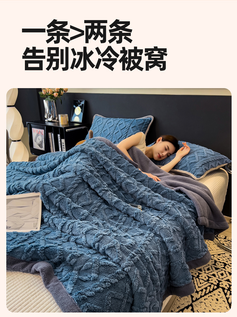 云恋家纺 2025新款卡通加厚雪花绒双层毛毯 塔芙绒毛毯-柔蓝