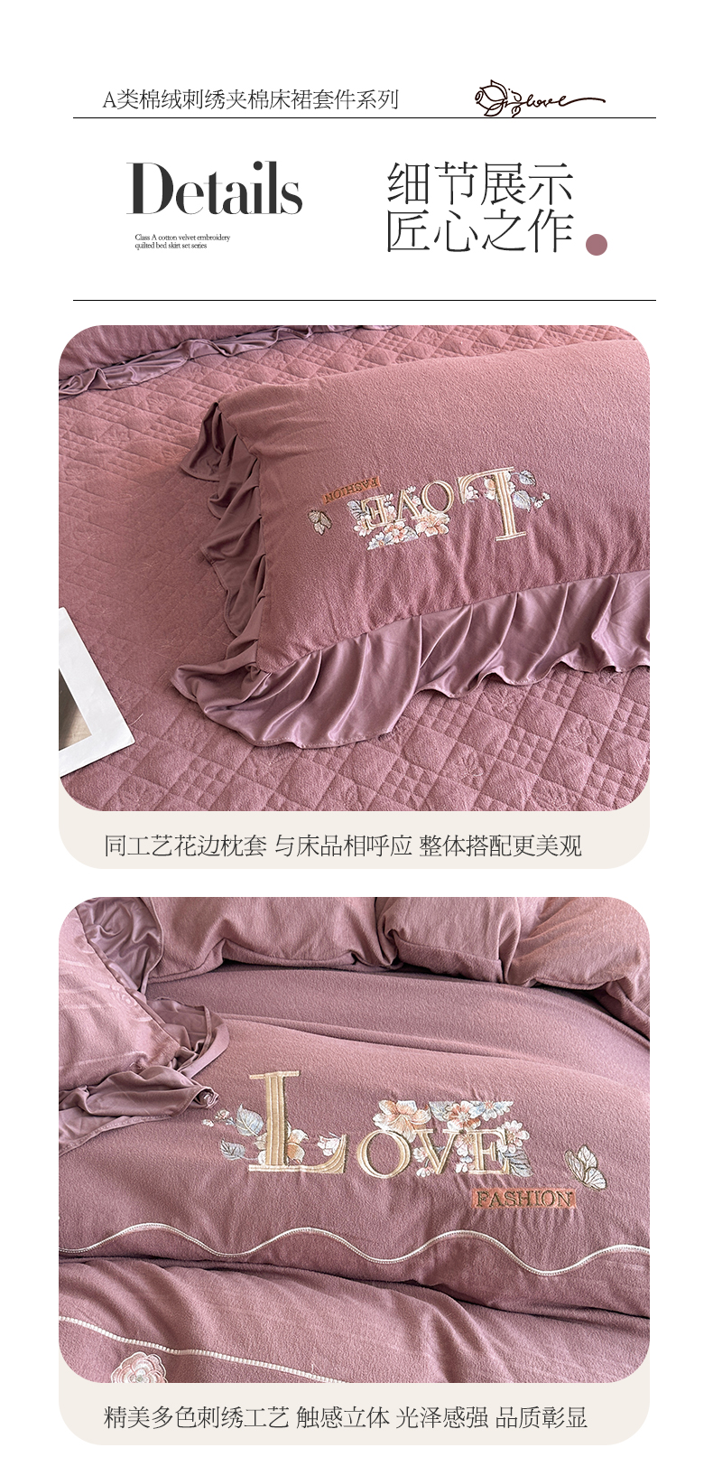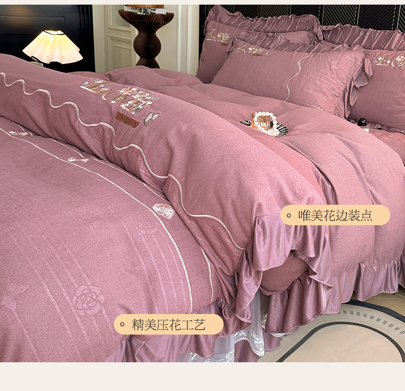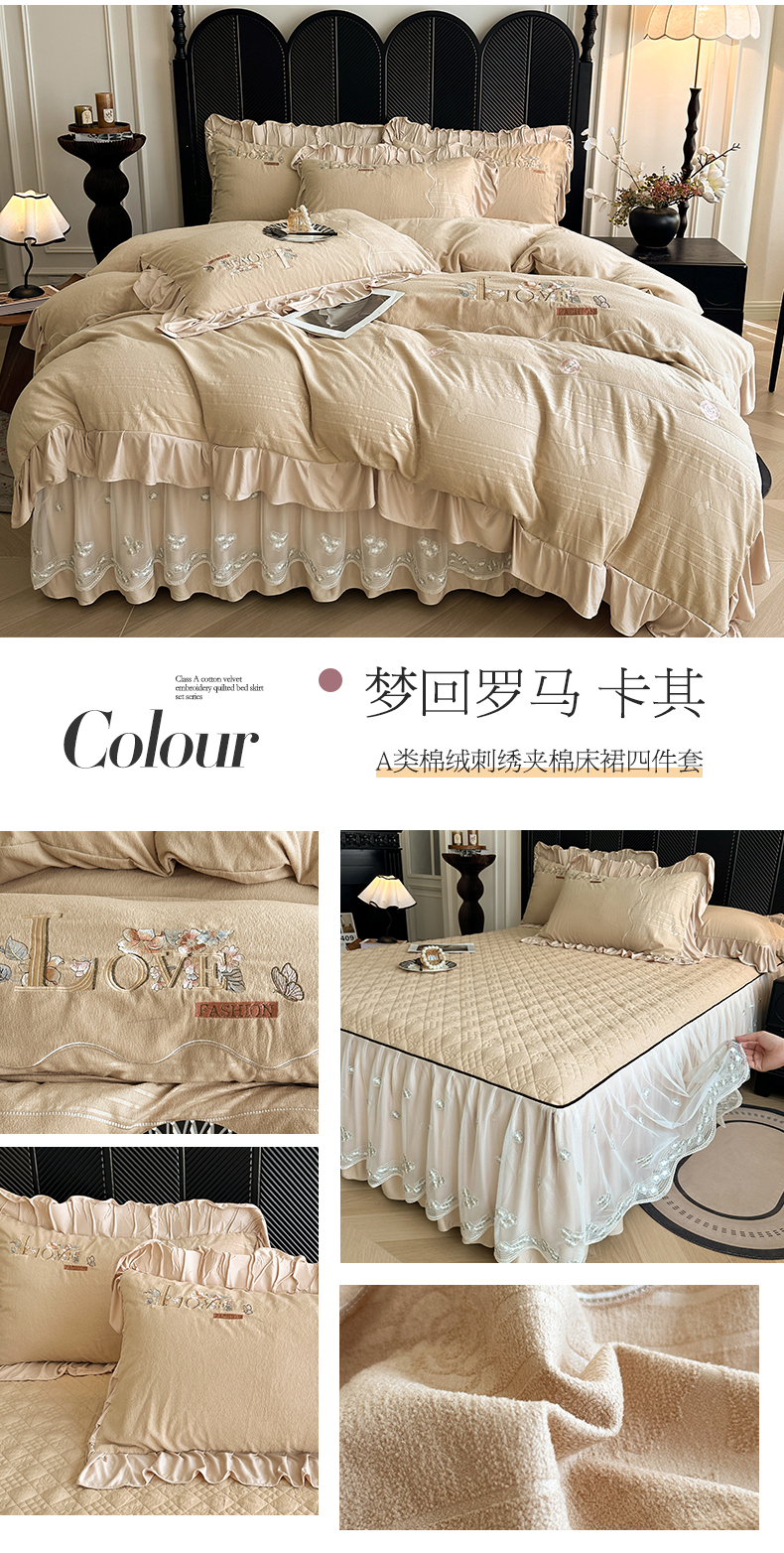 宜凡家纺 2025新款A类棉绒刺绣花夹棉床裙四件套--梦回罗马系列 梦回罗马 肤粉