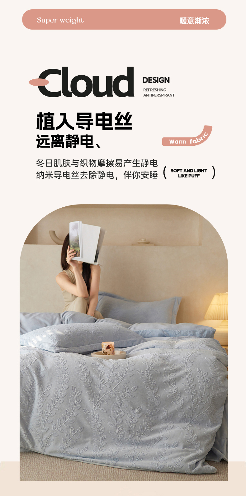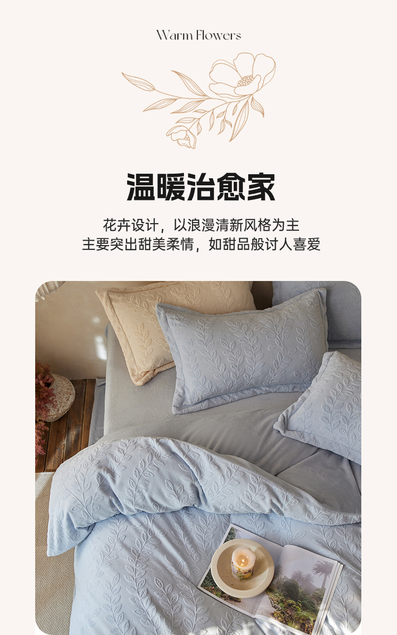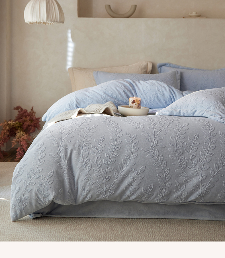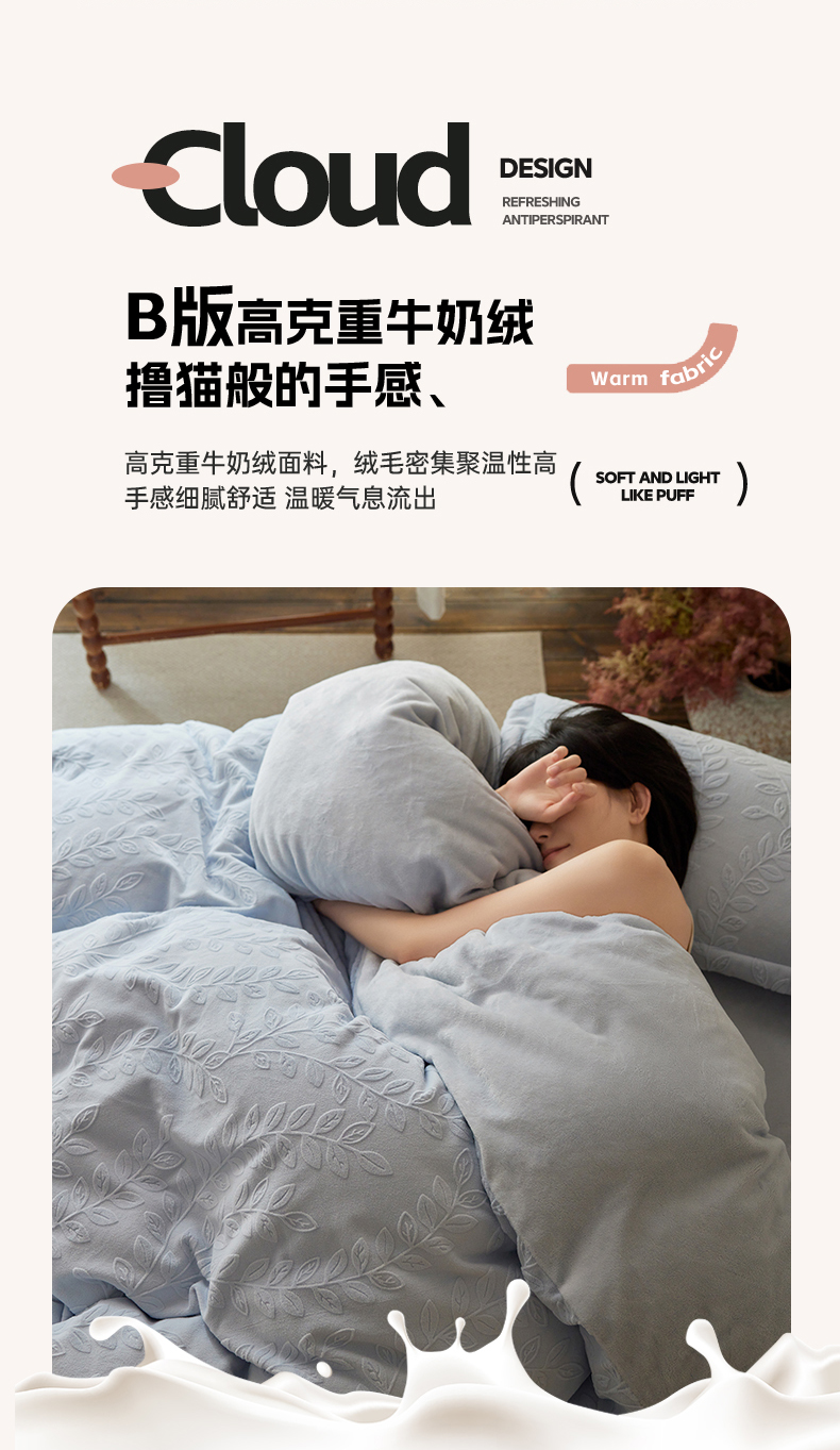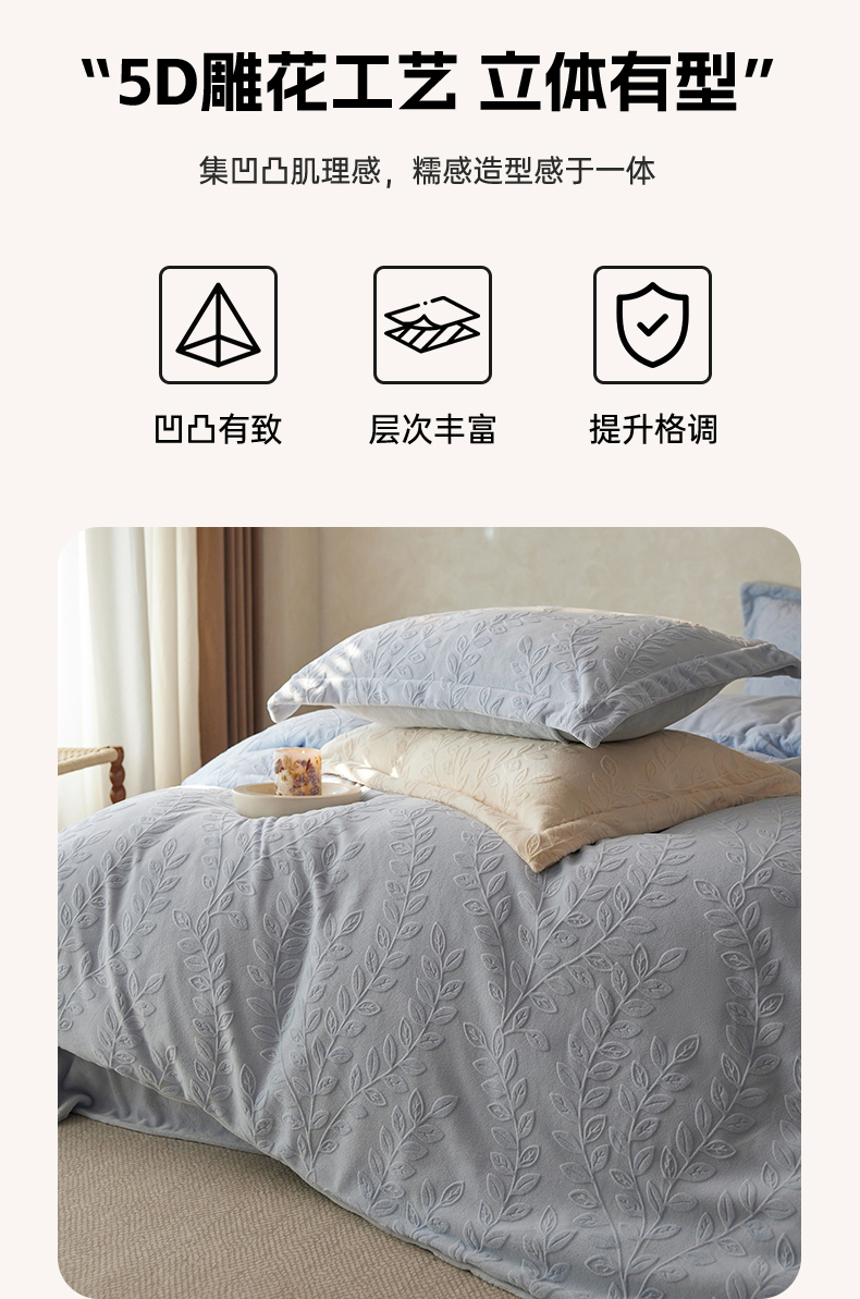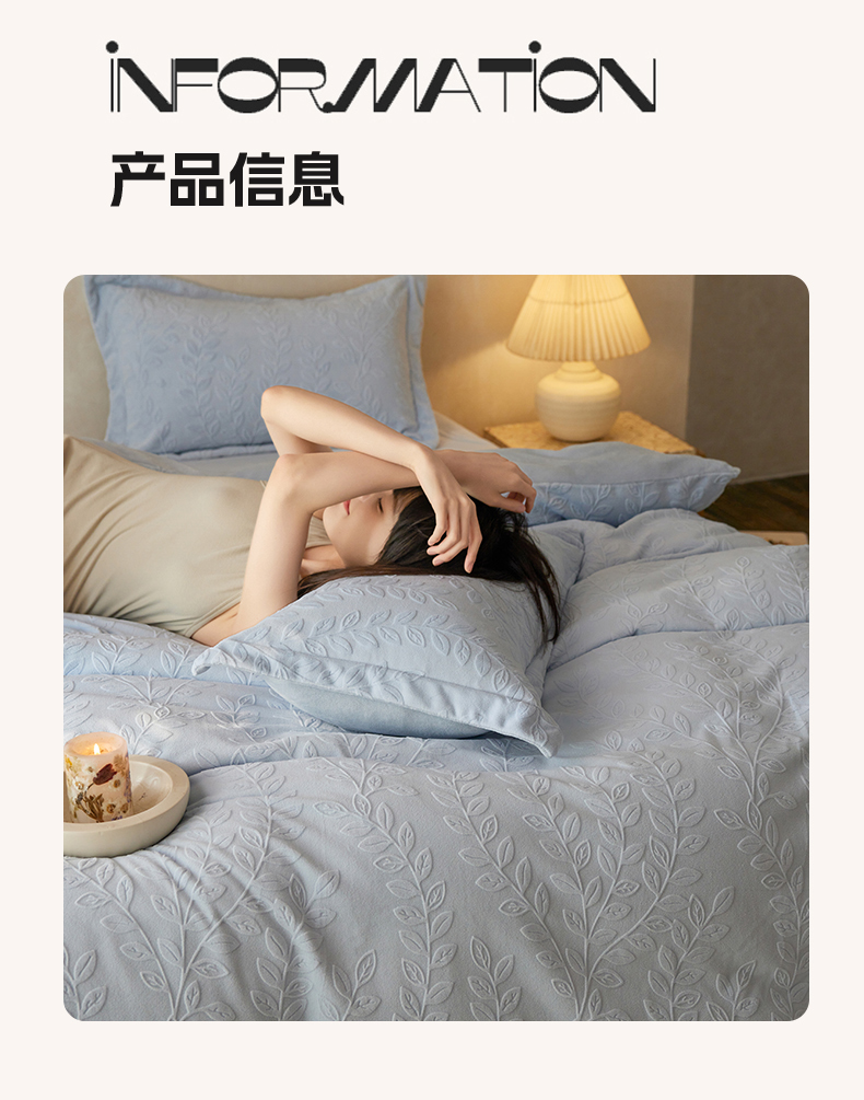 当前位置: 91家纺网 > 商品网购 > 床品套件 > 四件套 > 牛奶绒四件套 > 亿梵家居 2025秋冬新款A类全消光牛奶绒立体5D雕花绒四件套-风格一 (提供买家秀) 安娜花园-天空蓝