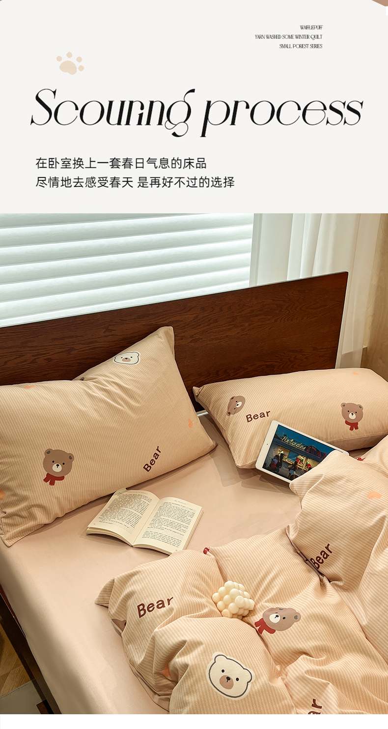 (总)(买家秀 热款花型 不断货)母婴级A类ins风水洗棉四件套水洗棉毛巾绣四件套水洗棉床笠四件套提花绣花,幸运小狗,开心熊猫,小红帽,小兔音乐会