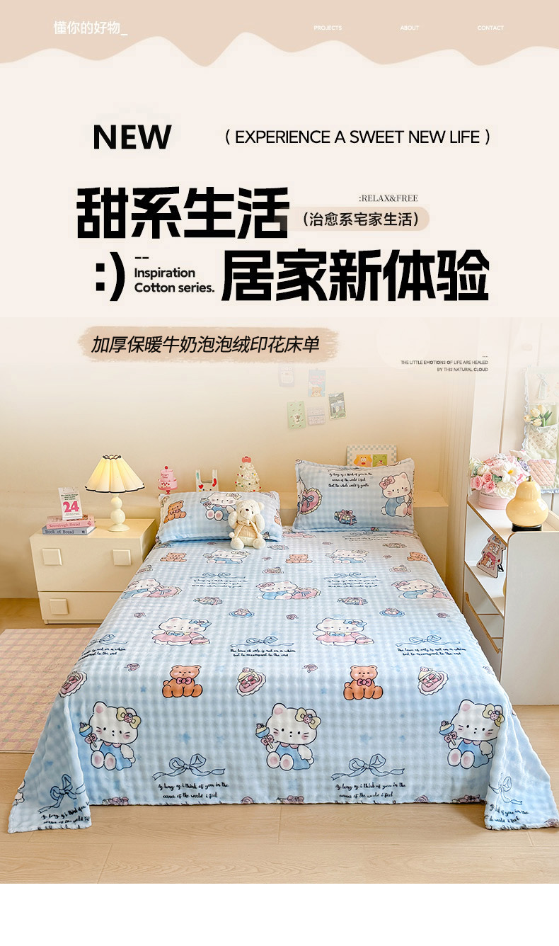 (总)绣女坊 2025新款A类高克重牛奶绒泡泡绒印花床单单件冬季保暖毛绒毯子绒床单三件套,黄油小熊,爱心kt,爱心蝴蝶结-绿,彩虹樱桃,公主kt,蝴蝶结-兰,画笔卡通,简单条格,维尼日记,星星小熊,元气格子,追梦努比