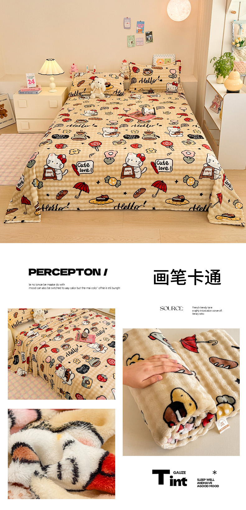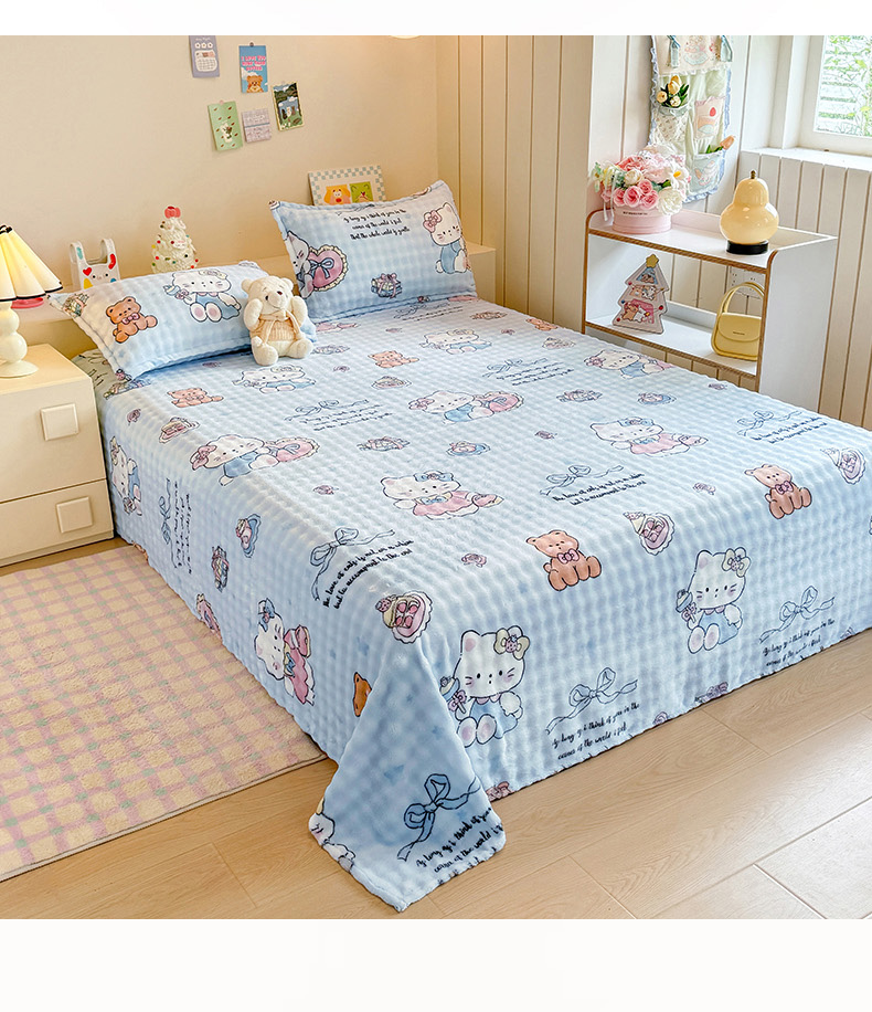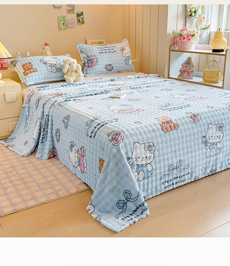 绣女坊 2025新款A类高克重牛奶绒泡泡绒印花床单单件冬季保暖毛绒毯子绒床单三件套 公主kt