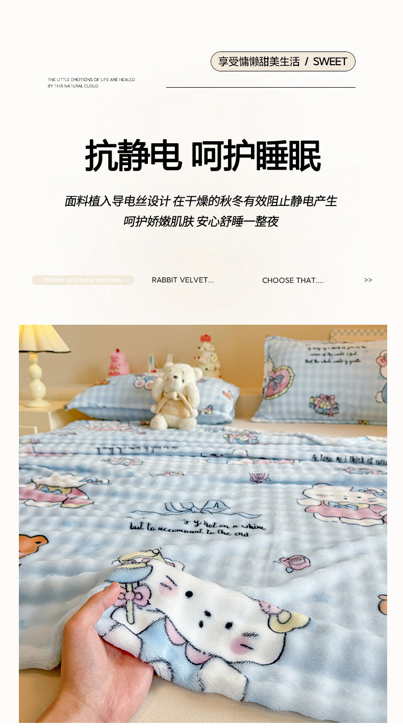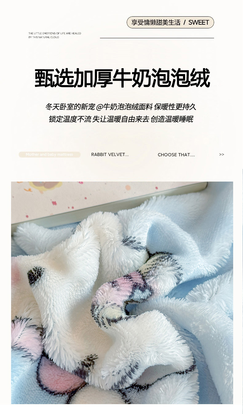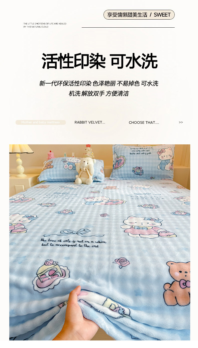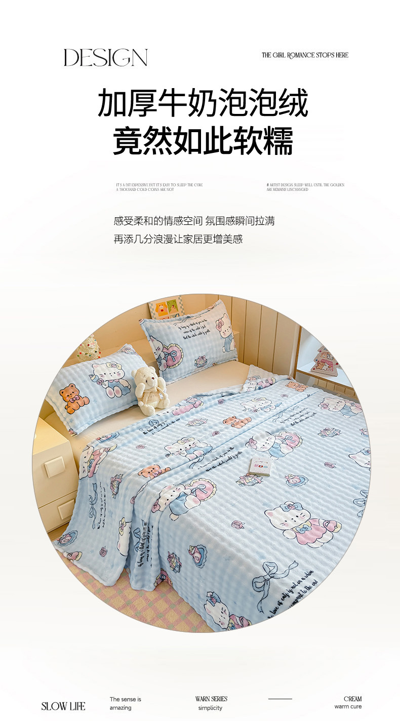 • 91家纺网 家纺一手货源 找家纺 绣女坊 2025新款A类高克重牛奶绒泡泡绒印花床单单件冬季保暖毛绒毯子绒床单三件套 公主kt