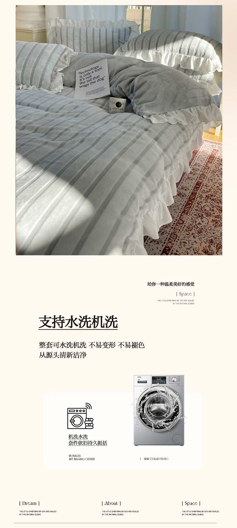 商品名称:(总)三朵家纺 2025新款3D立体加厚雕花绒牛奶绒花边款四件套