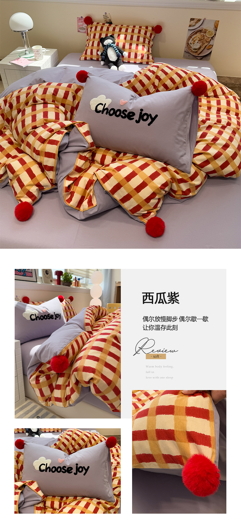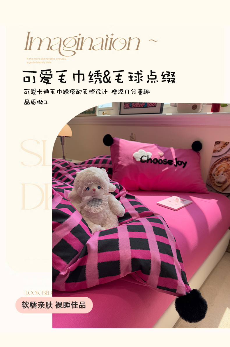 呗旺鹿 2025新款全棉磨毛球球工艺款四件套 芋泥波波