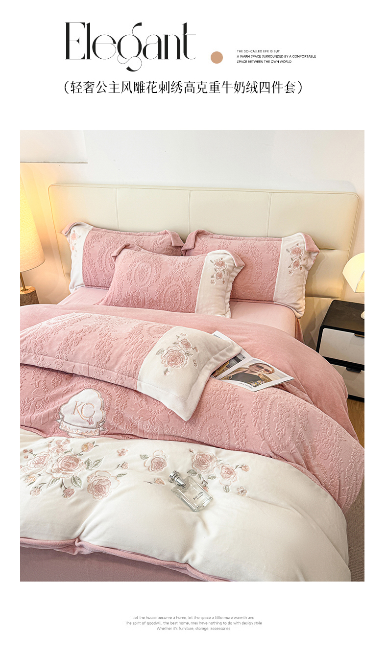 (总)金牛座家纺 2025新款公主轻奢雕花牛奶绒刺绣四件套-韵律系列 【控价 售价请勿低于178】