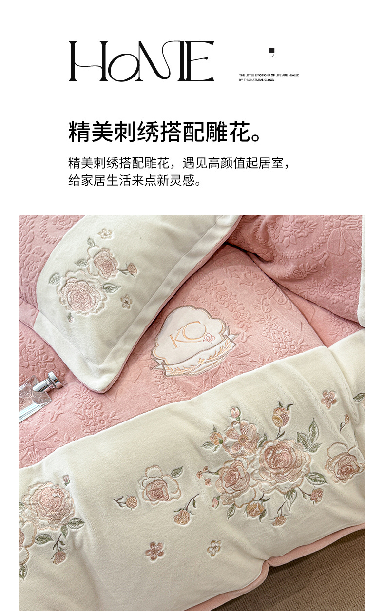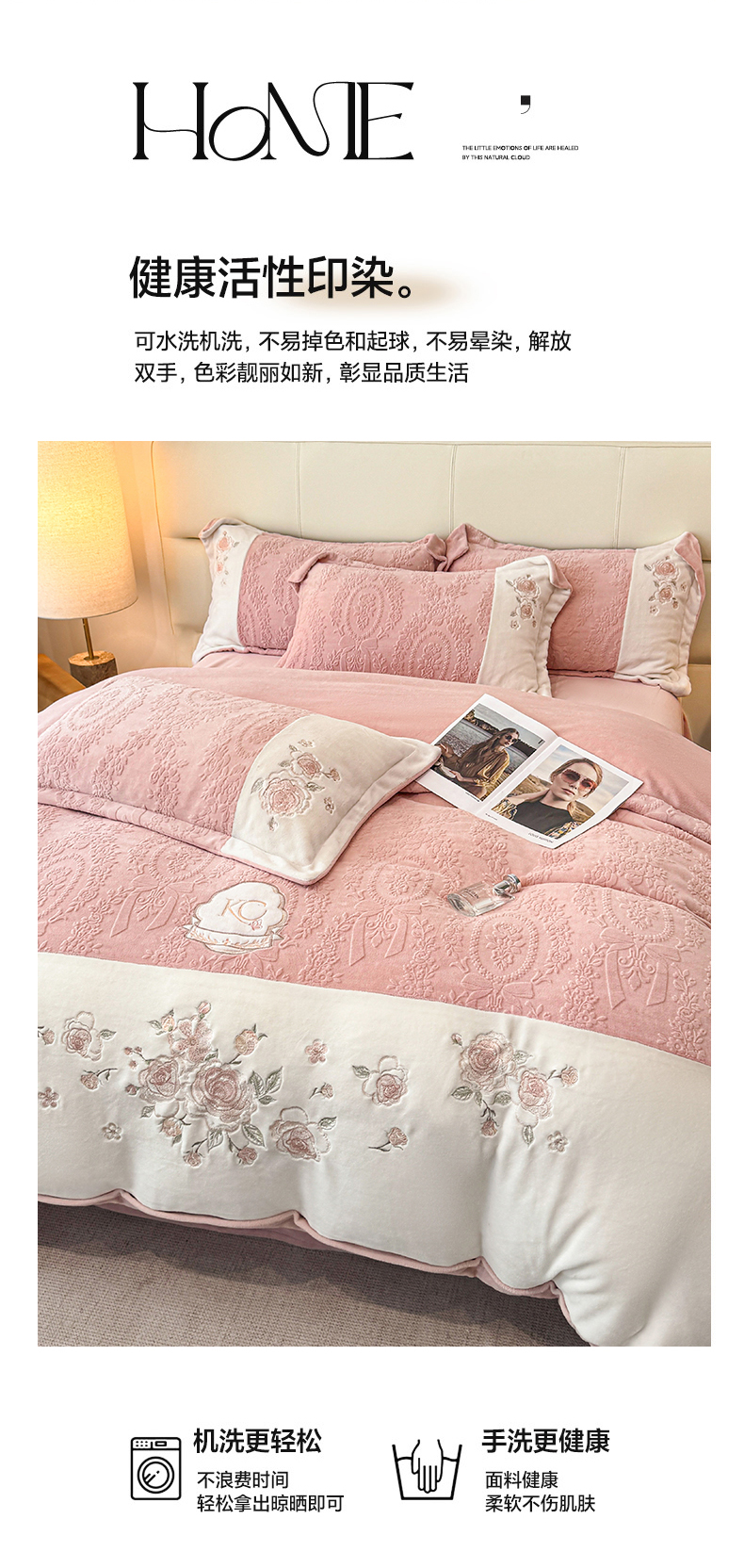 (总)金牛座家纺 2025新款立体雕花加厚牛奶绒刺绣拼接四件套【控价 售价请勿低于158】,花海,春见,蝶林,玫语