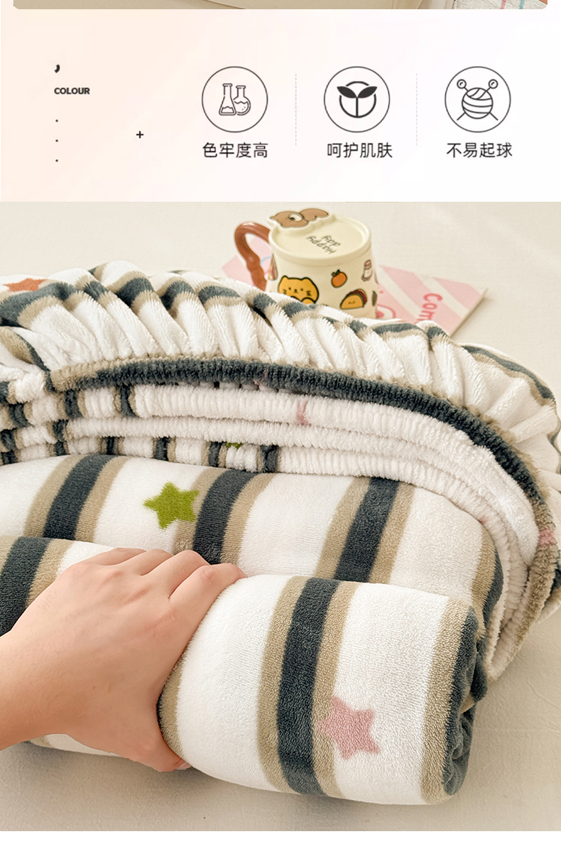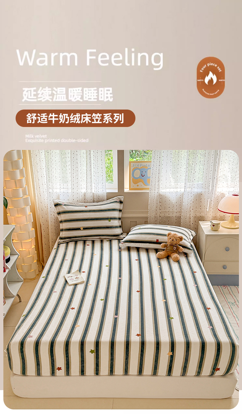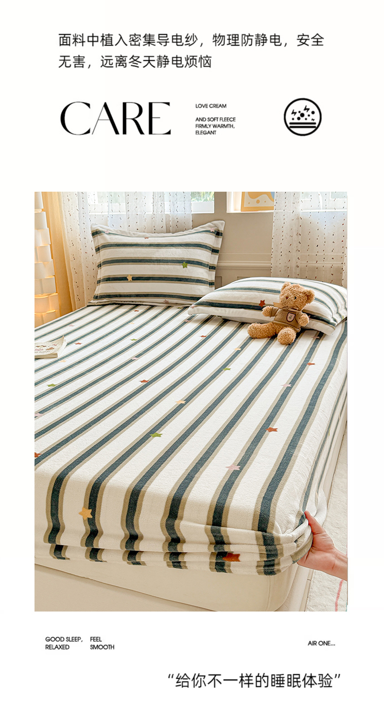• 91家纺网 家纺一手货源 找家纺 丽美人 2025新款高克重印花牛奶绒无印风床笠款(A类母婴级面料) 彩星黑条