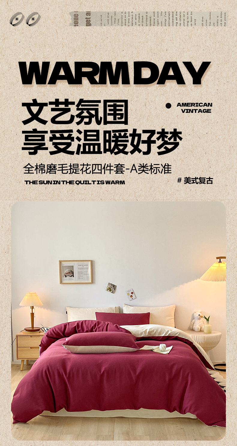 当前位置: 91家纺网 > 商品网购 > 床品套件 > 四件套 > 全棉普通四件套 > 小叮当家纺仓储工厂店 2025新款提供买家秀爆款花型不断货60s水洗提花全棉纯棉磨毛四件套 富贵红